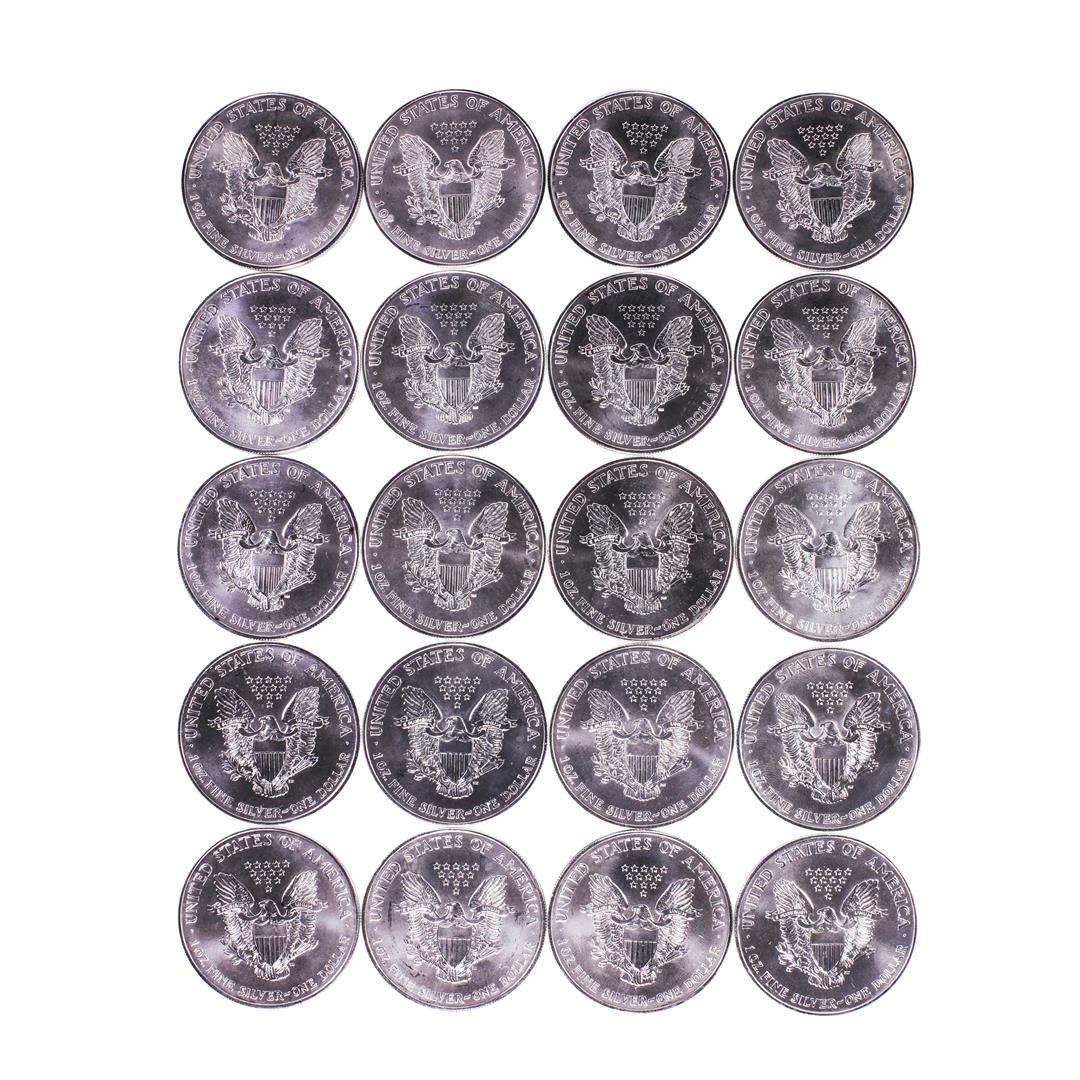 One Roll of (20) Brilliant Uncirculated 1996 $1 American Silver Eagle Coins.