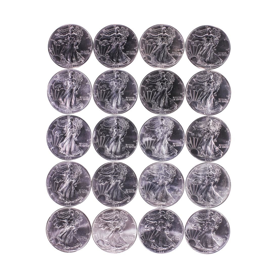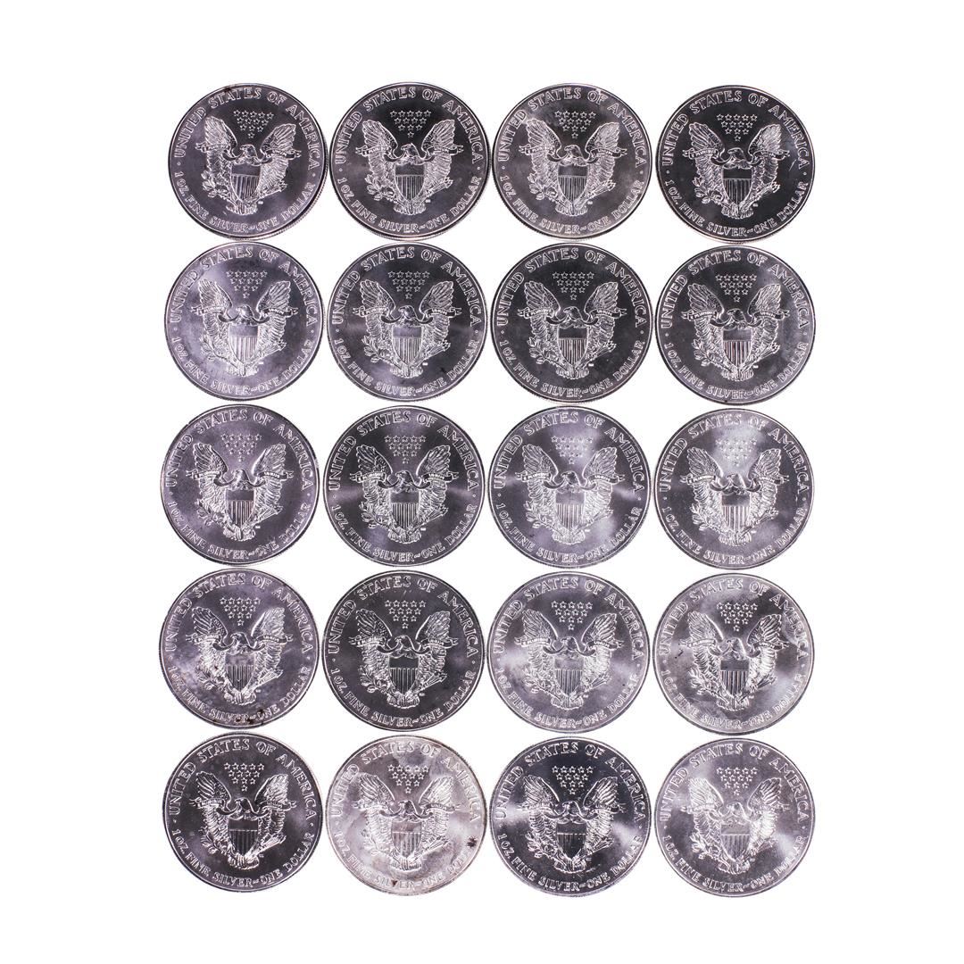 One Roll of (20) Brilliant Uncirculated 1996 $1 American Silver Eagle Coins.