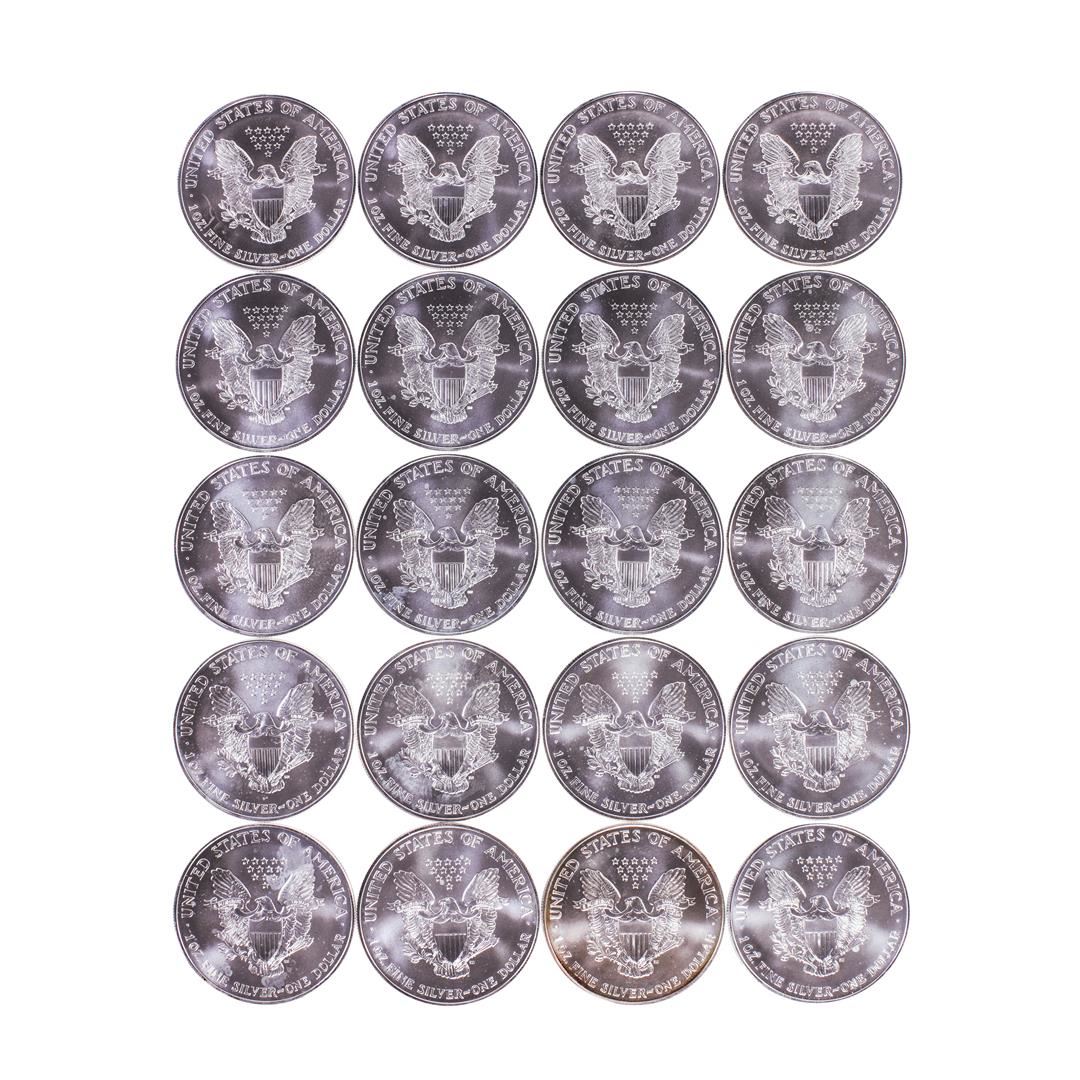 One Roll of (20) Brilliant Uncirculated 1996 $1 American Silver Eagle Coins.