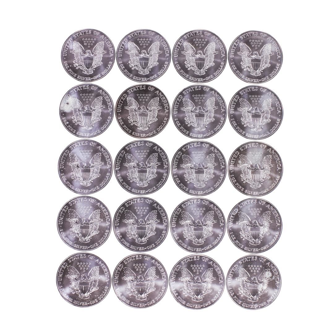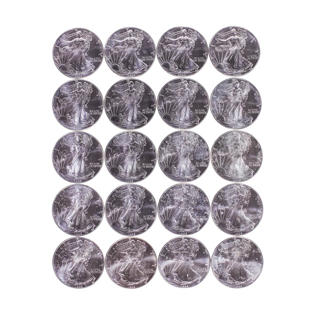One Roll of (20) Brilliant Uncirculated 1996 $1 American Silver Eagle Coins.