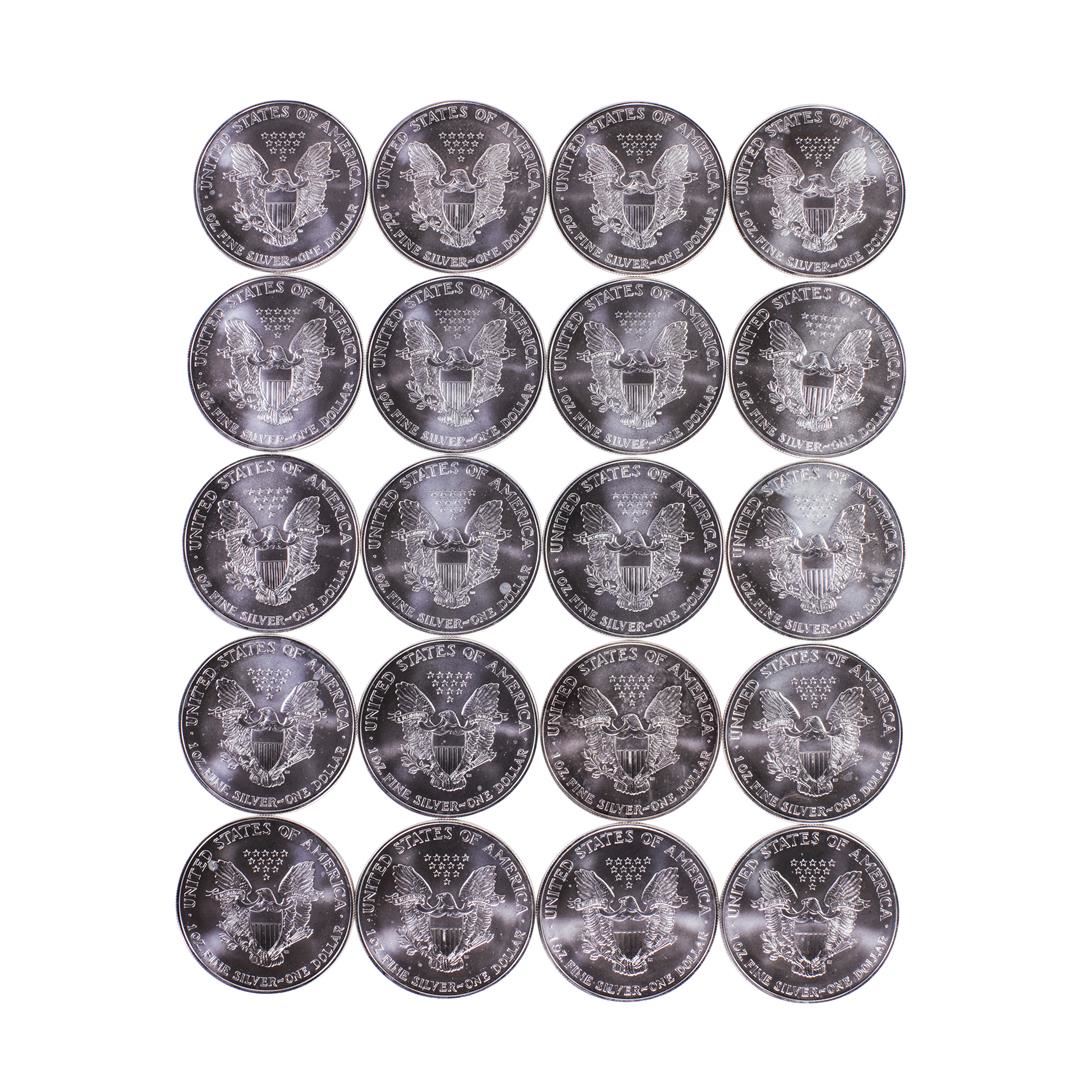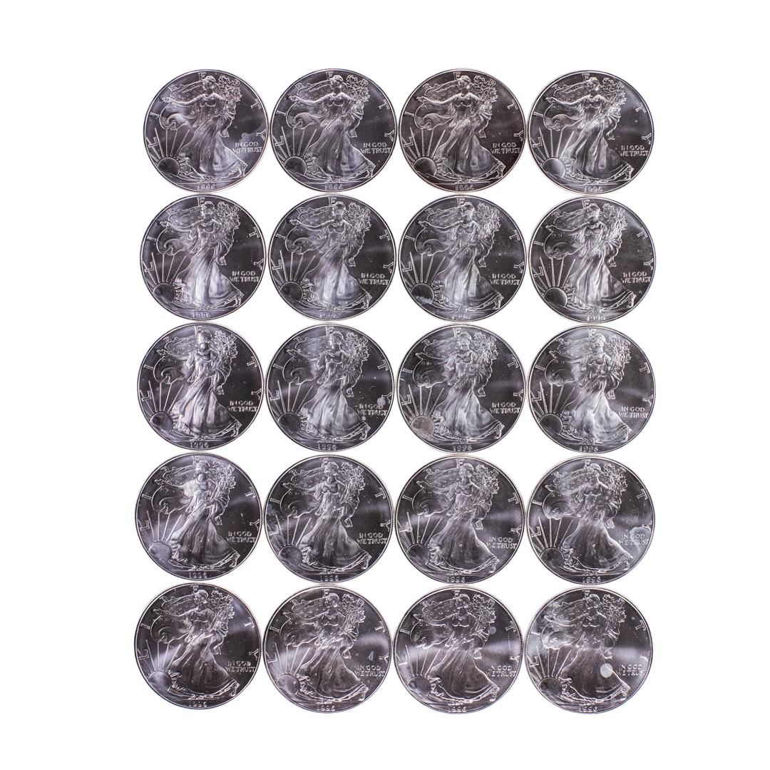 One Roll of (20) Brilliant Uncirculated 1996 $1 American Silver Eagle Coins.