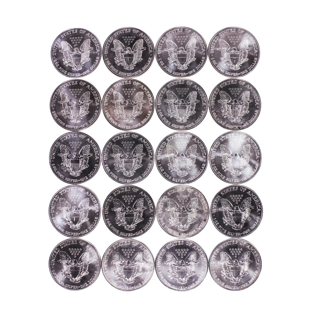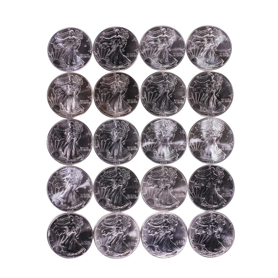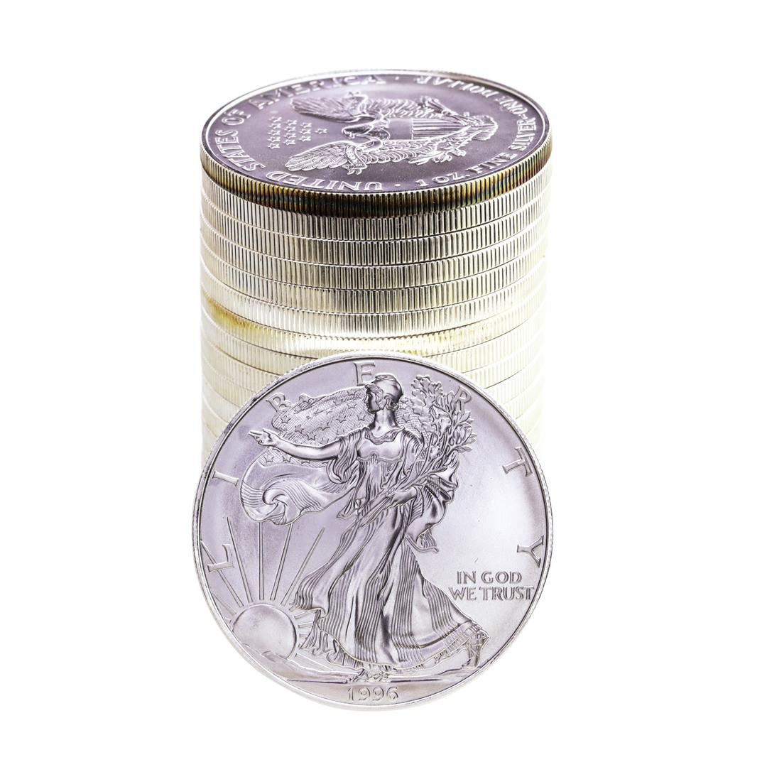 One Roll of (20) Brilliant Uncirculated 1996 $1 American Silver Eagle Coins.