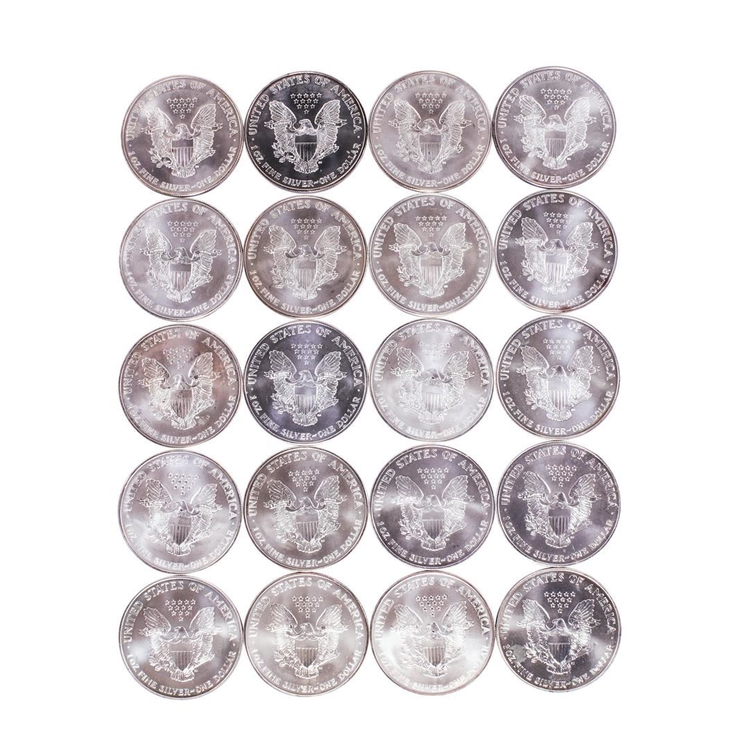 One Roll of (20) Brilliant Uncirculated 1996 $1 American Silver Eagle Coins.