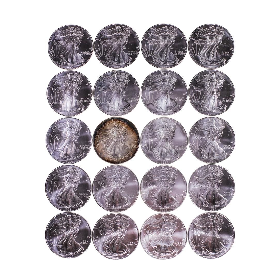 One Roll of (20) Brilliant Uncirculated 1996 $1 American Silver Eagle Coins.