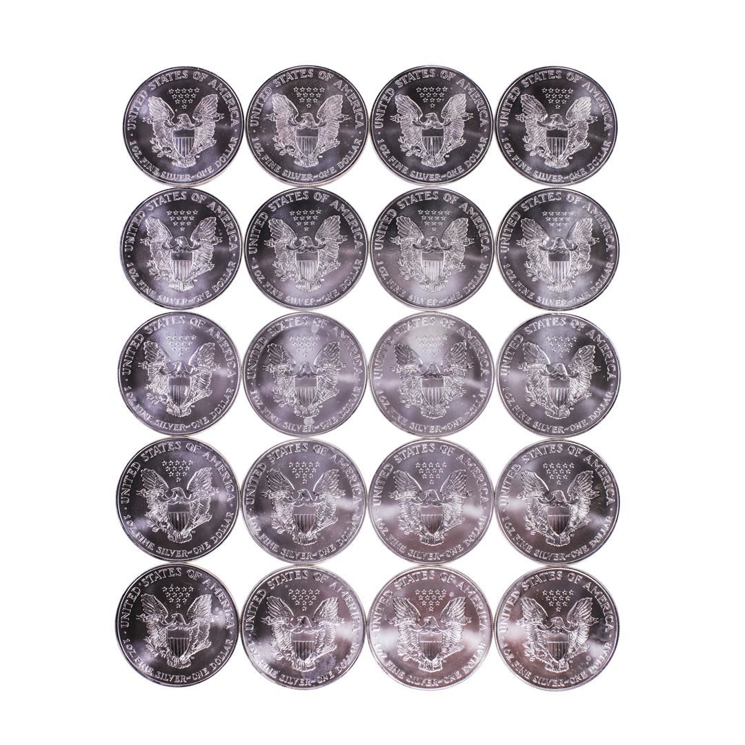 One Roll of (20) Brilliant Uncirculated 1996 $1 American Silver Eagle Coins.