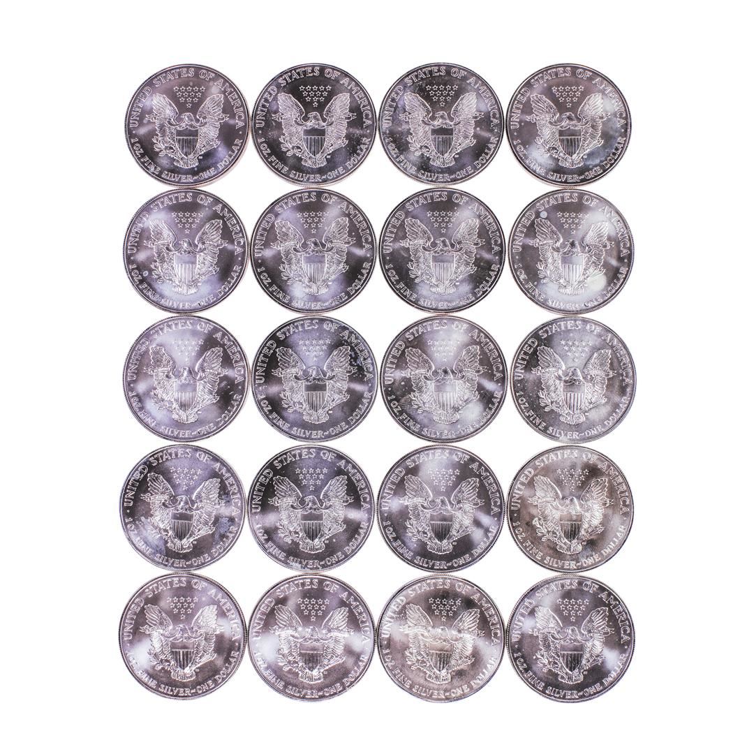 One Roll of (20) Brilliant Uncirculated 1996 $1 American Silver Eagle Coins.