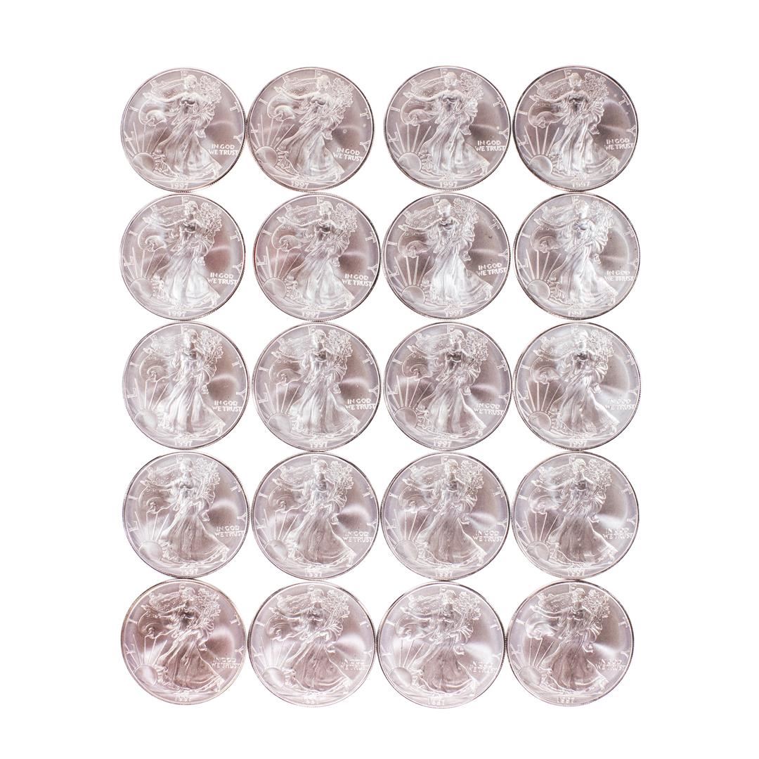 Roll of (20) Brilliant Uncirculated 1997 $1 American Silver Eagle Coins