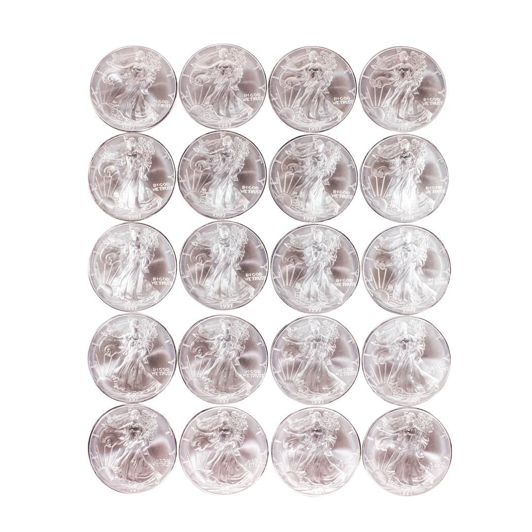 One Roll of (20) Brilliant Uncirculated 1997 $1 American Silver Eagle Coins.