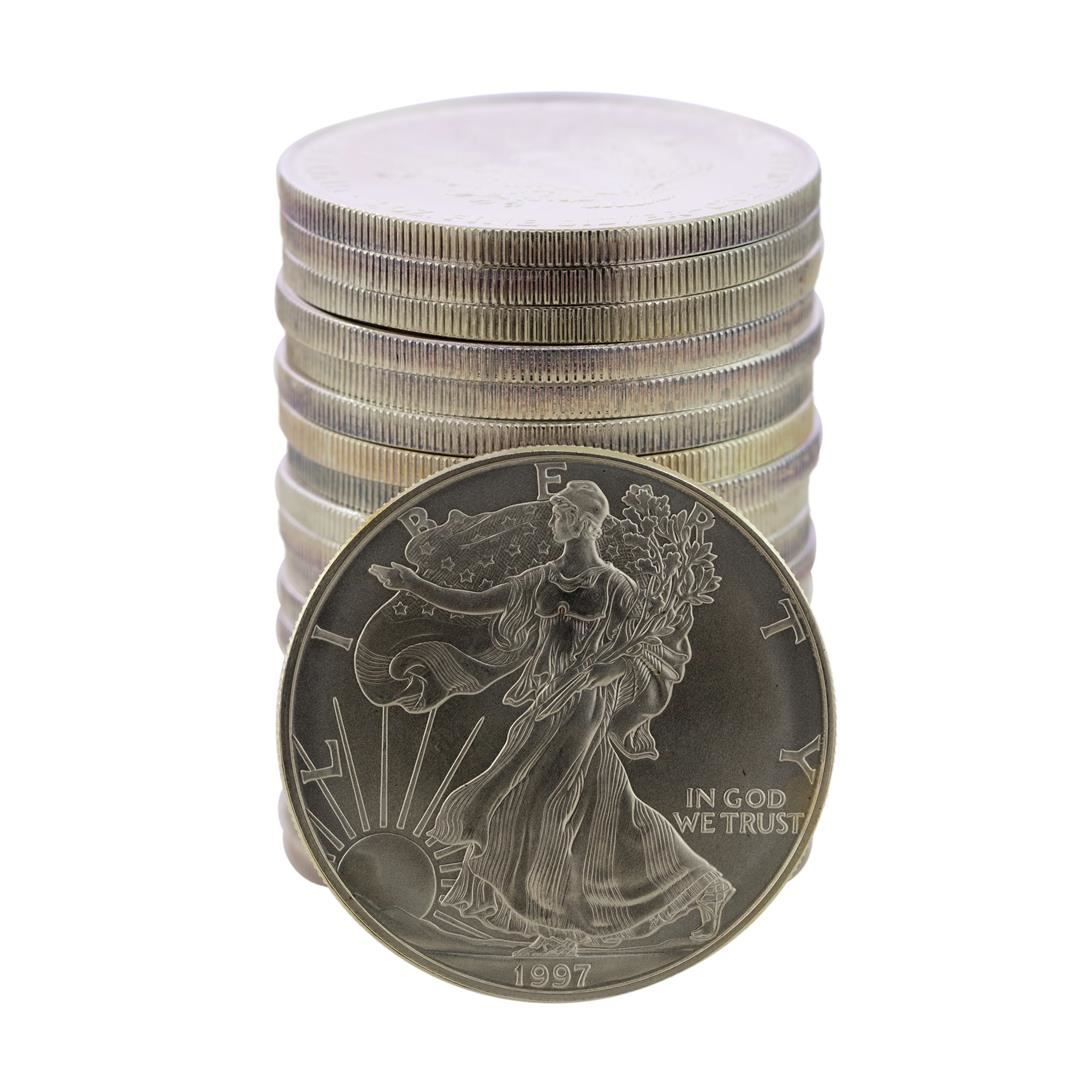 One Roll of (20) Brilliant Uncirculated 1997 $1 American Silver Eagle Coins.