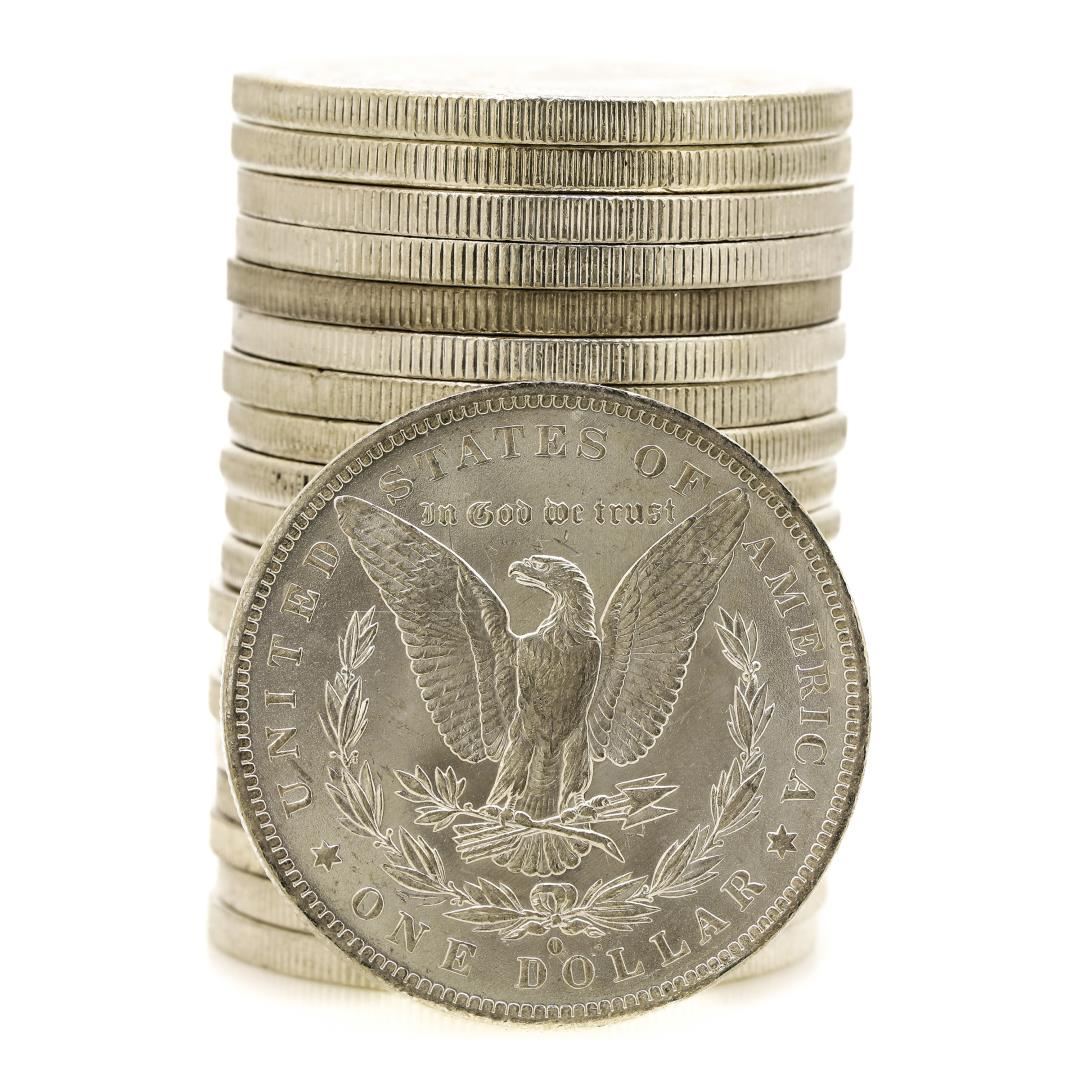 Roll of (20) Brilliant Uncirculated Mixed Date $1 Morgan Silver Dollar Coins. This roll contains (9) x 1883-O,(4) x 1885, (5) x 1885-O, and (2) x 1887.
