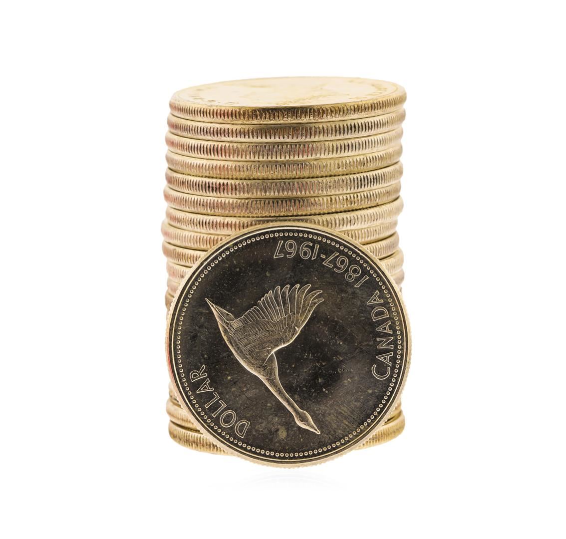 One Roll of (20) Mixed Date Canadian Silver Dollars BU.