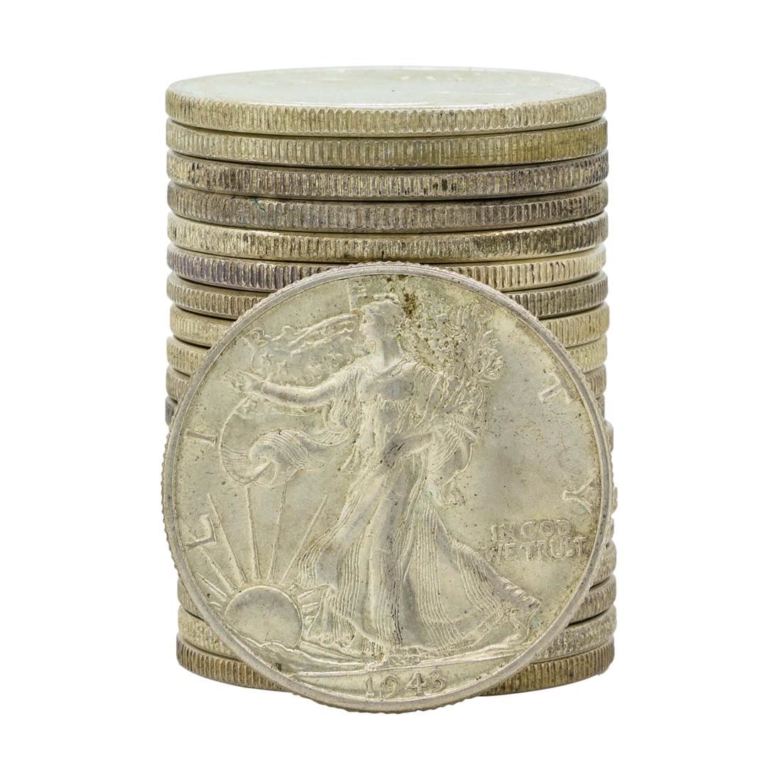 One Roll of (20) Mixed Date Walking Half Dollar Coins.