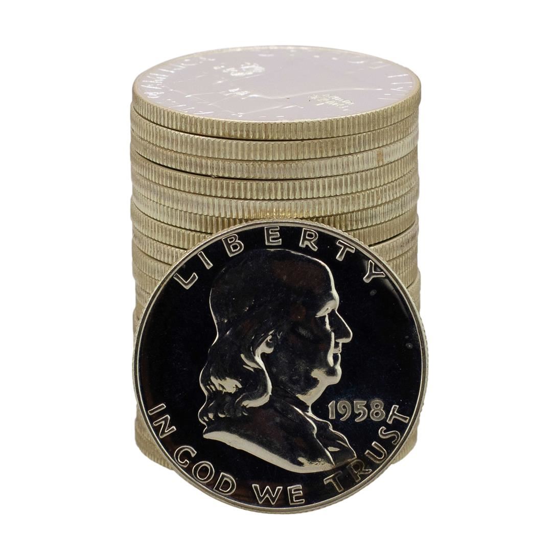 One Roll of (20) Proof 1958 Franklin Half Dollar Coins.