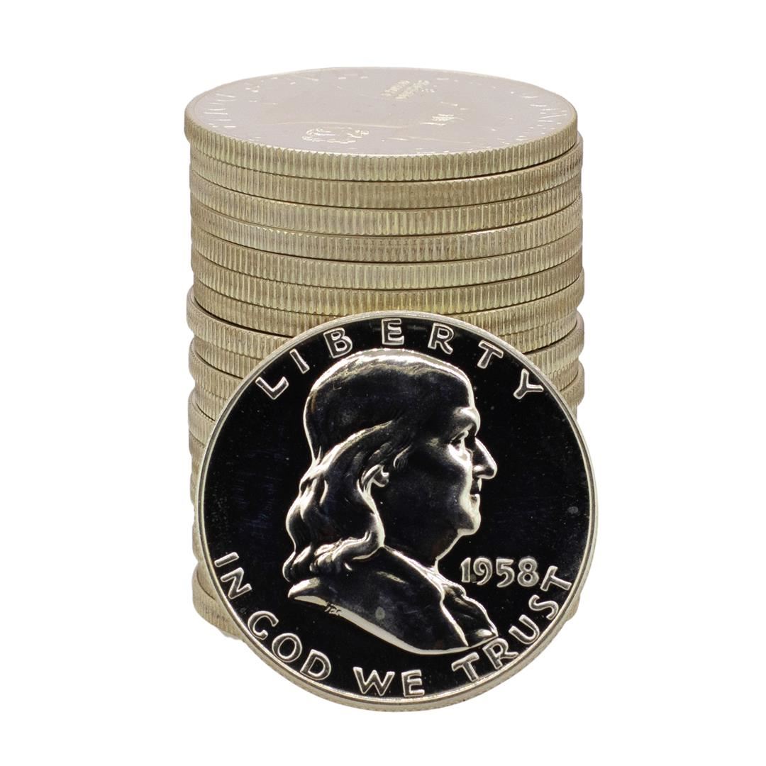 One Roll of (20) Proof 1958 Franklin Half Dollar Coins.