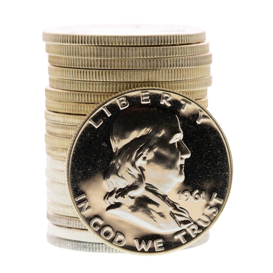 One Roll of (20) Proof 1961 Franklin Half Dollar Coins.