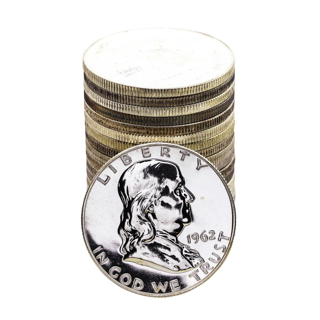 One Roll of (20) Proof 1962 Franklin Half Dollar Coins.