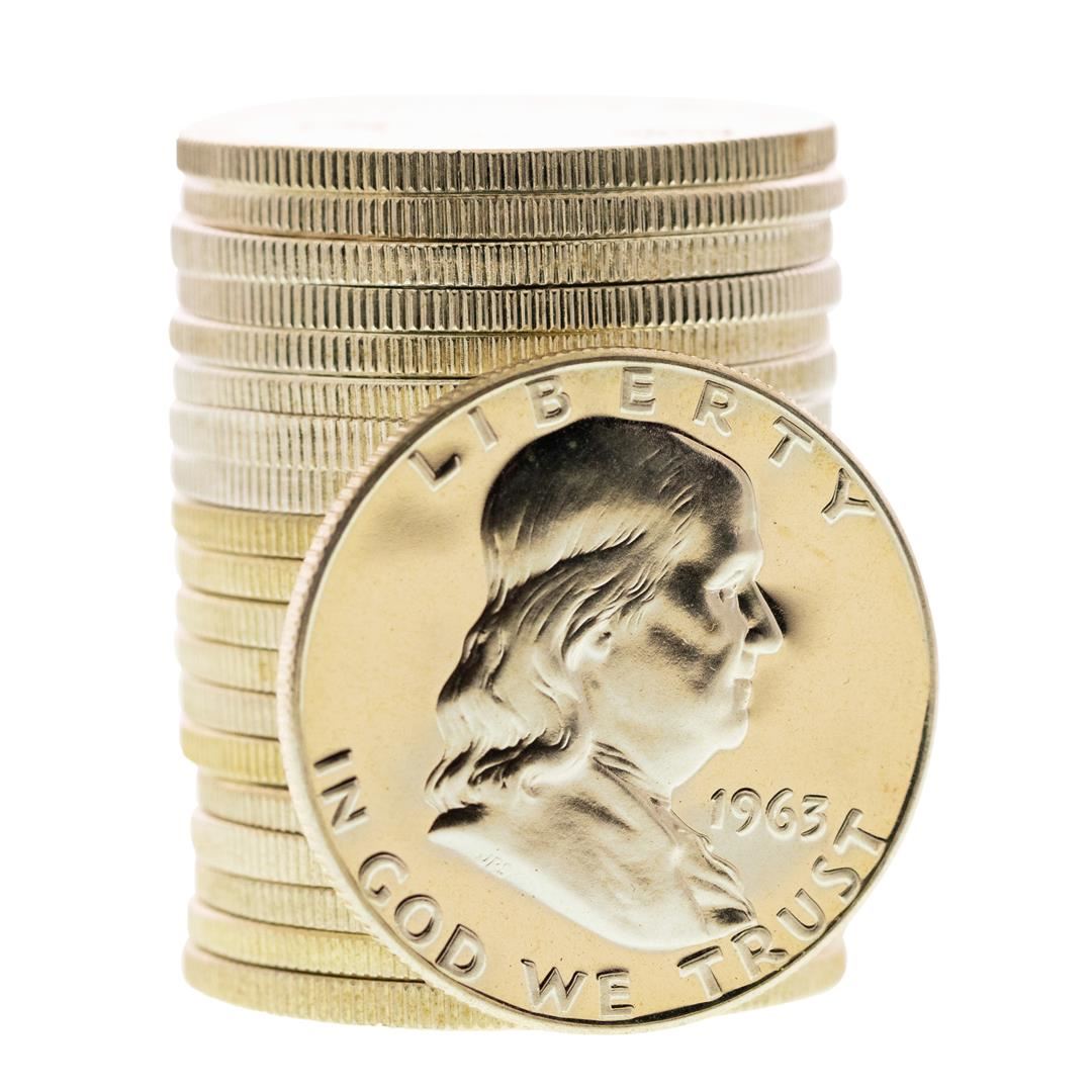 One Roll of (20) Proof 1963 Franklin Half Dollar Coins.