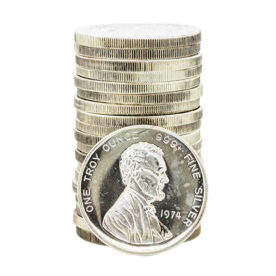 Roll of (20) Vintage 1974 High Relief Lincoln .999 Fine Silver 1 oz. Rounds