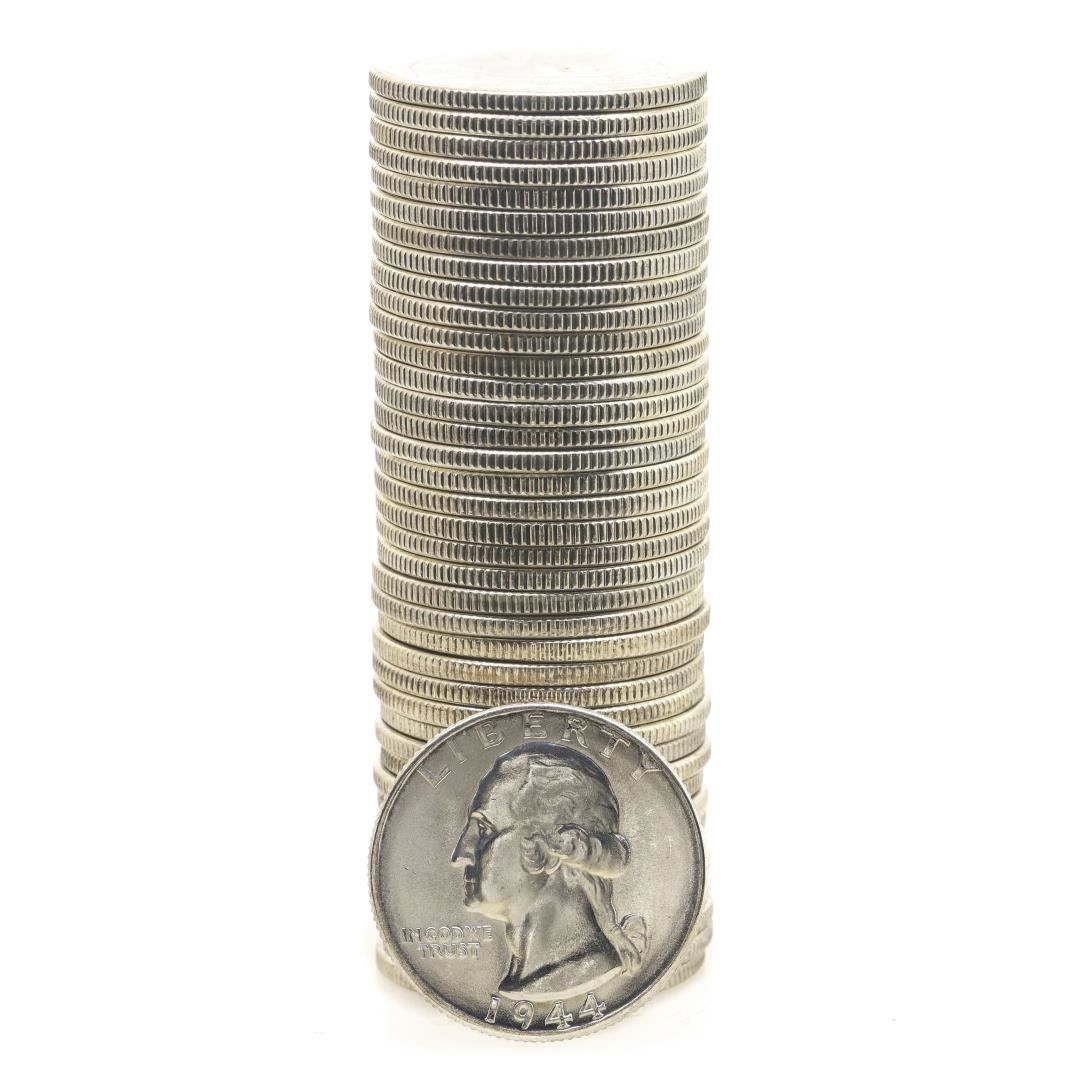 Roll of (40) Brilliant Uncirculated 1944 Washington Quarter Coins