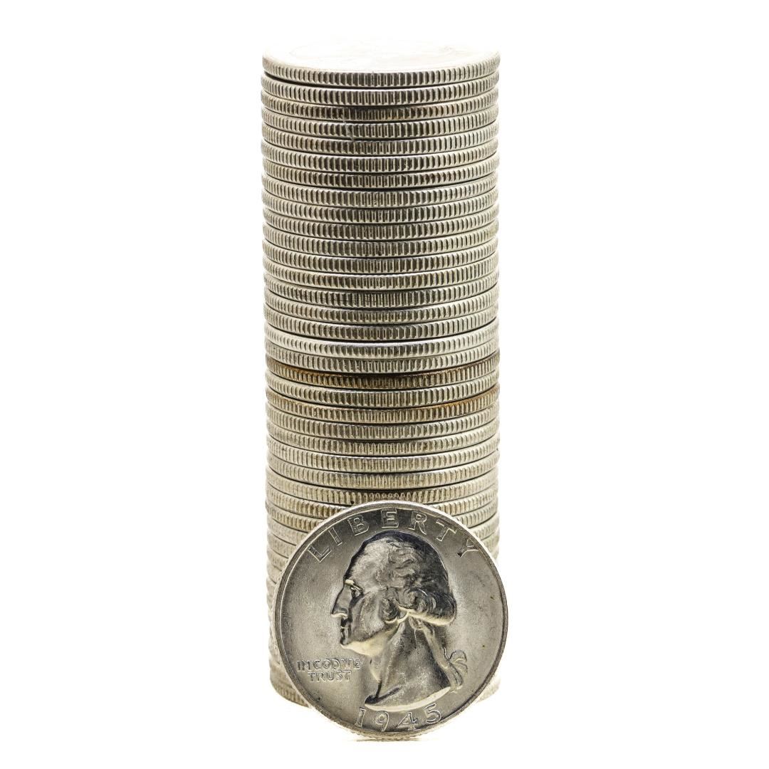 Roll of (40) Brilliant Uncirculated 1945 Washington Quarter Coins