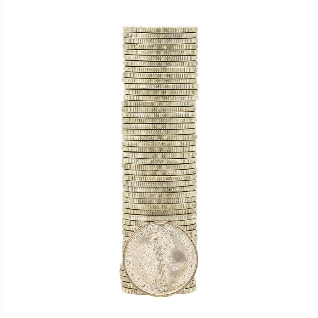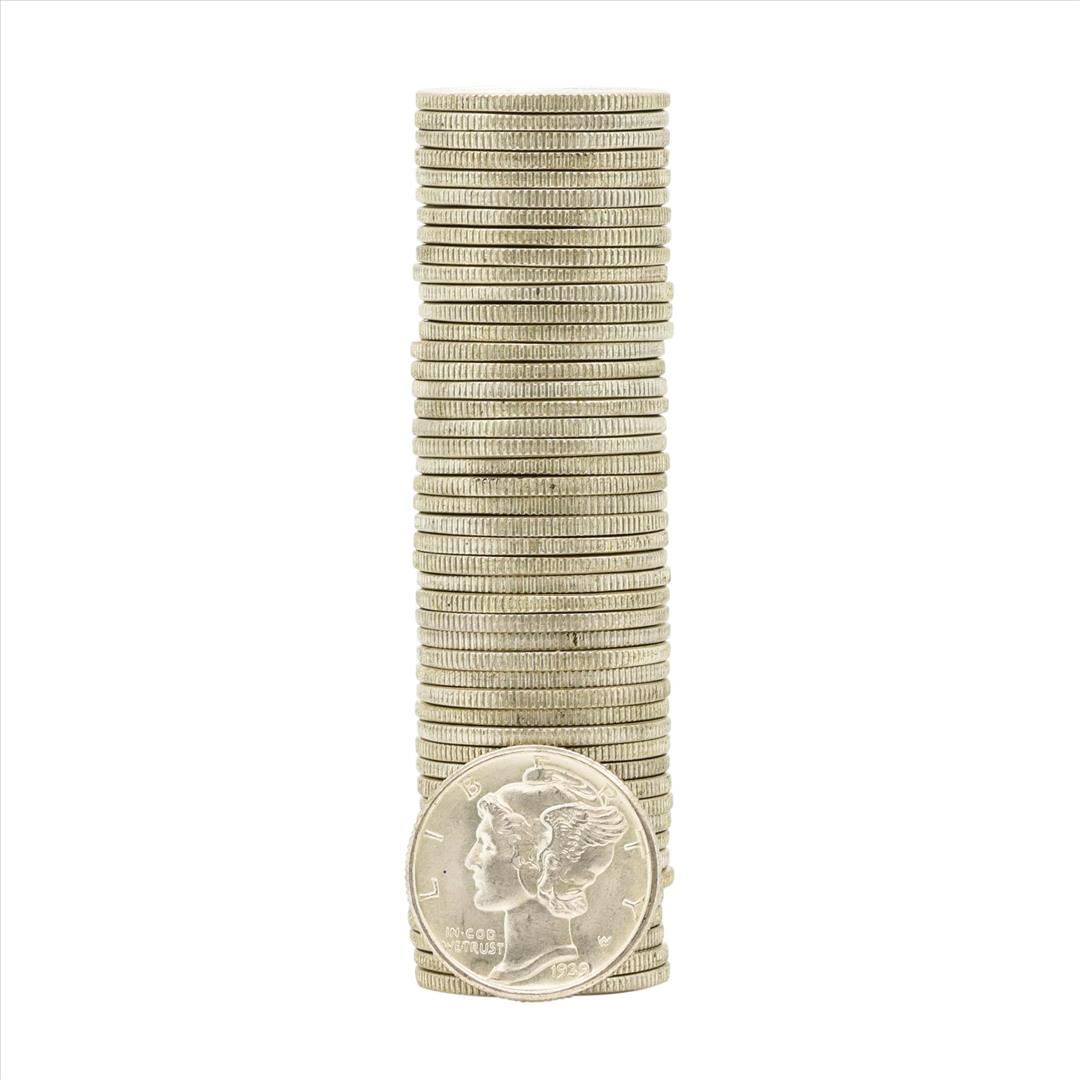 One Roll of (50) 1939-D Brilliant Uncirculated Mercury Dimes.
