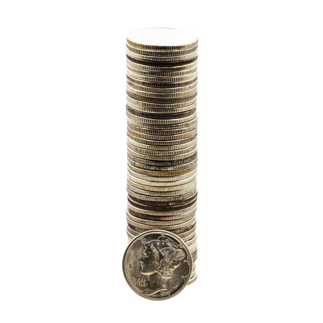 One Roll of (50) 1945 Mercury Dime Coins.