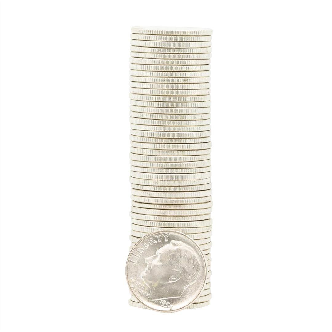 One Roll of (50) 1954 Brilliant Uncirculated Roosevelt Dimes.