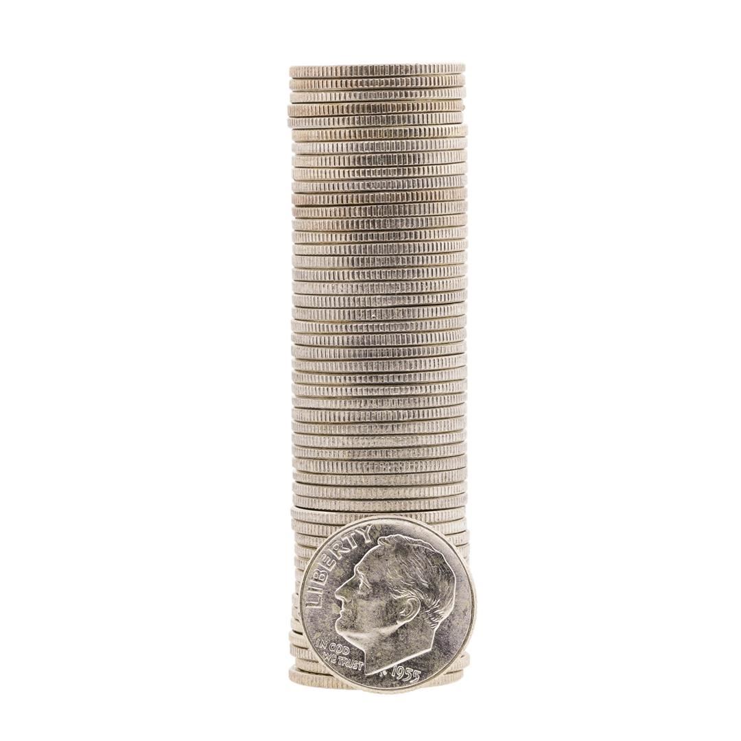 One Roll of (50) 1955 Brilliant Uncirculated Roosevelt Dimes.
