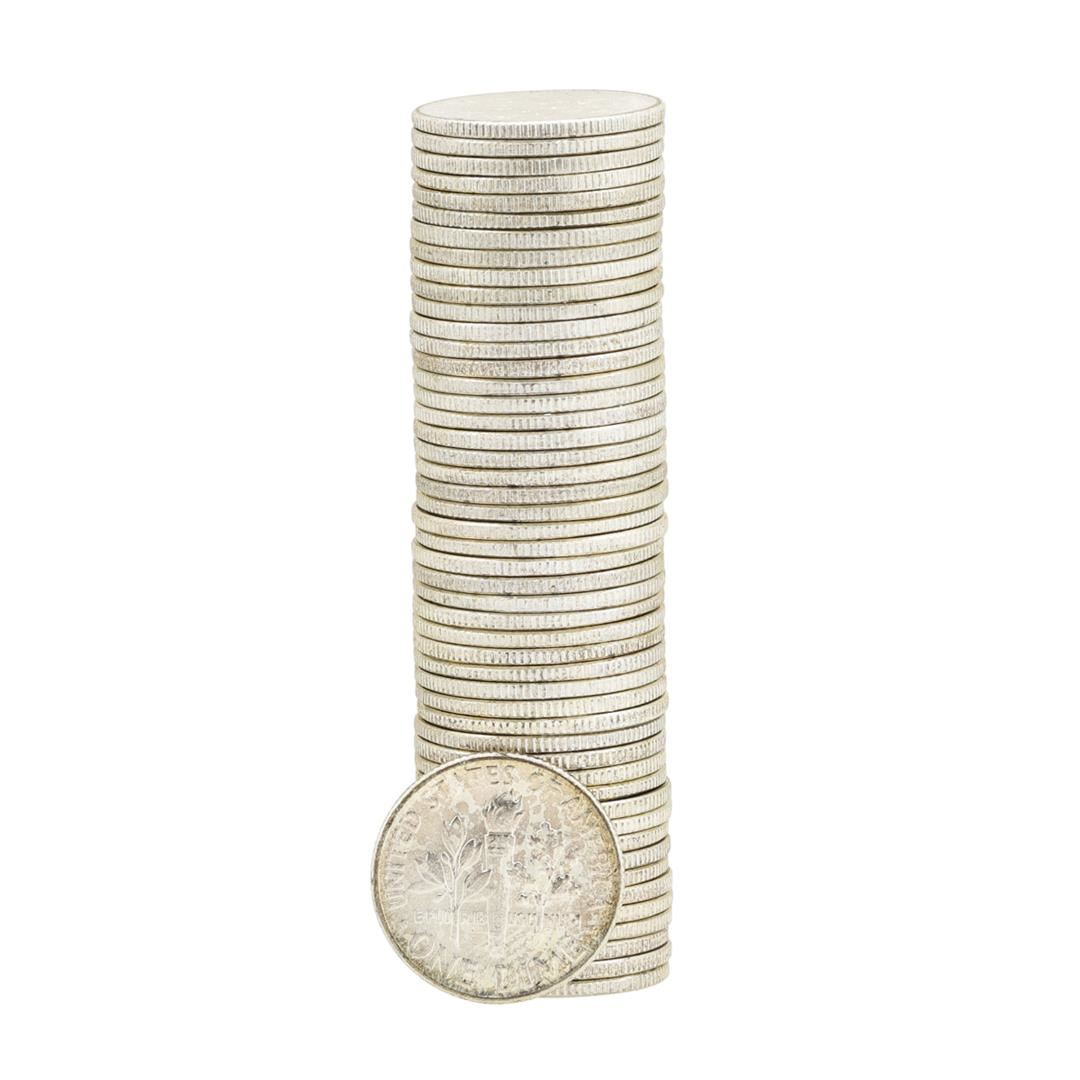 One Roll of (50) 1955 Brilliant Uncirculated Roosevelt Dimes.