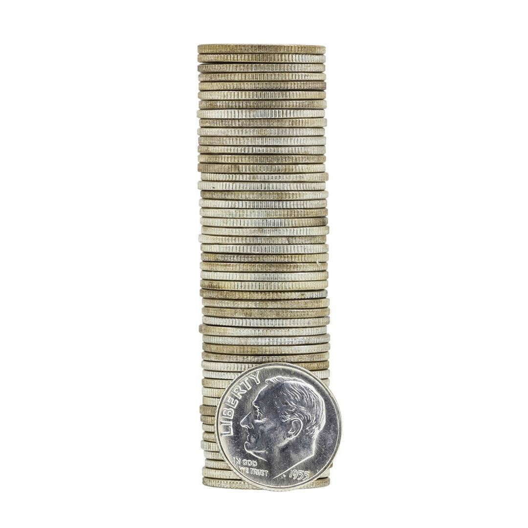 One Roll of (50) 1955-D Brilliant Uncirculated Roosevelt Dimes.