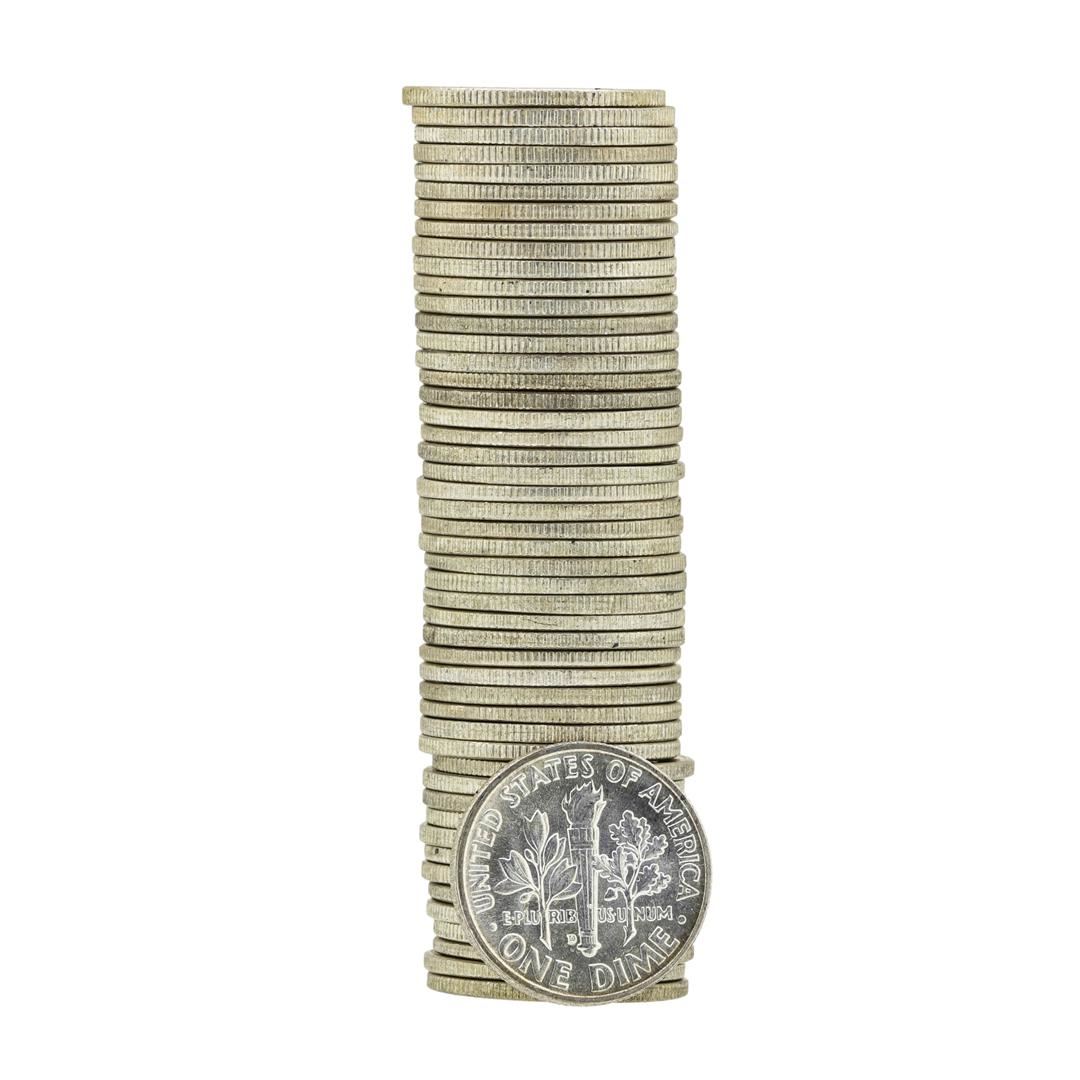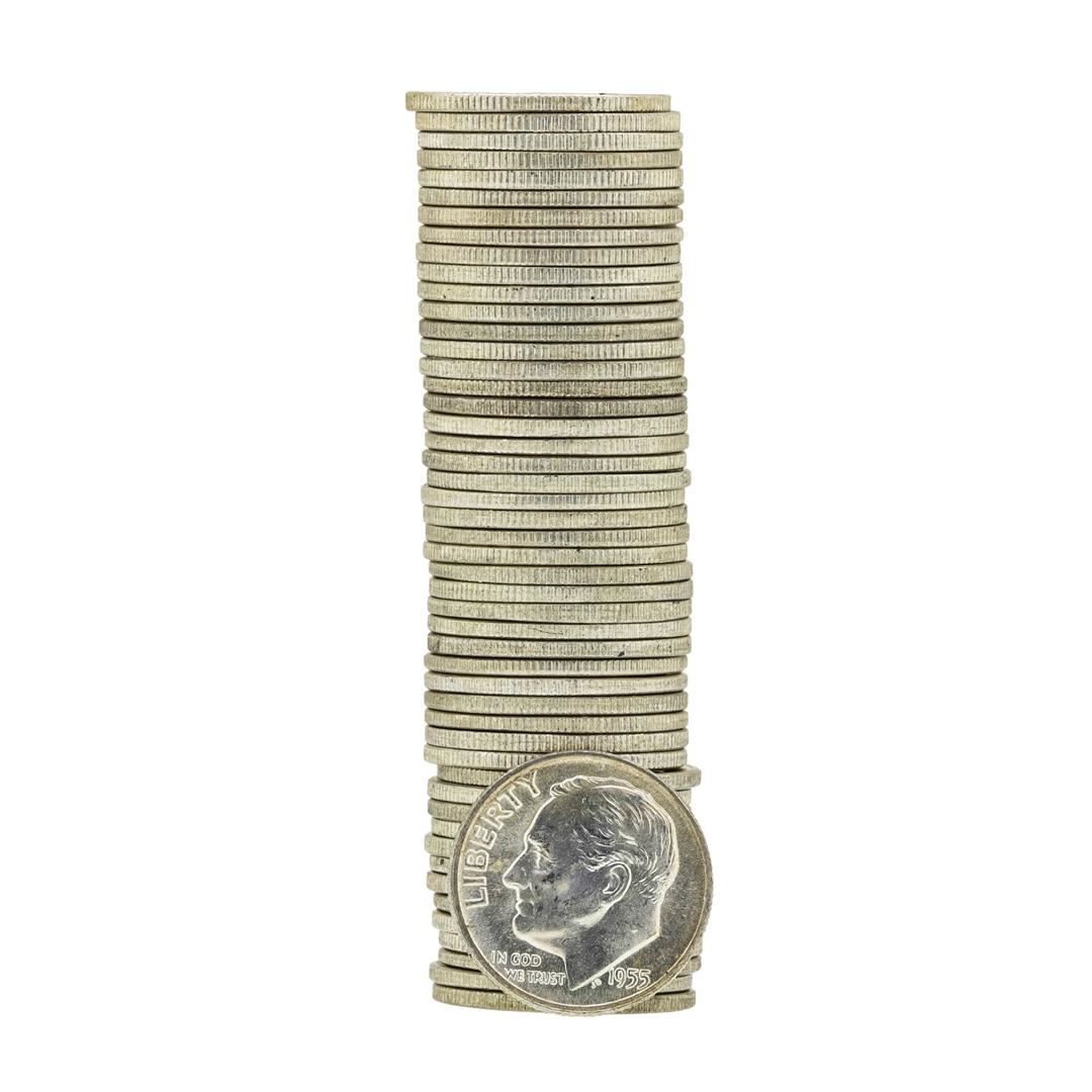 One Roll of (50) 1955-D Brilliant Uncirculated Roosevelt Dimes.