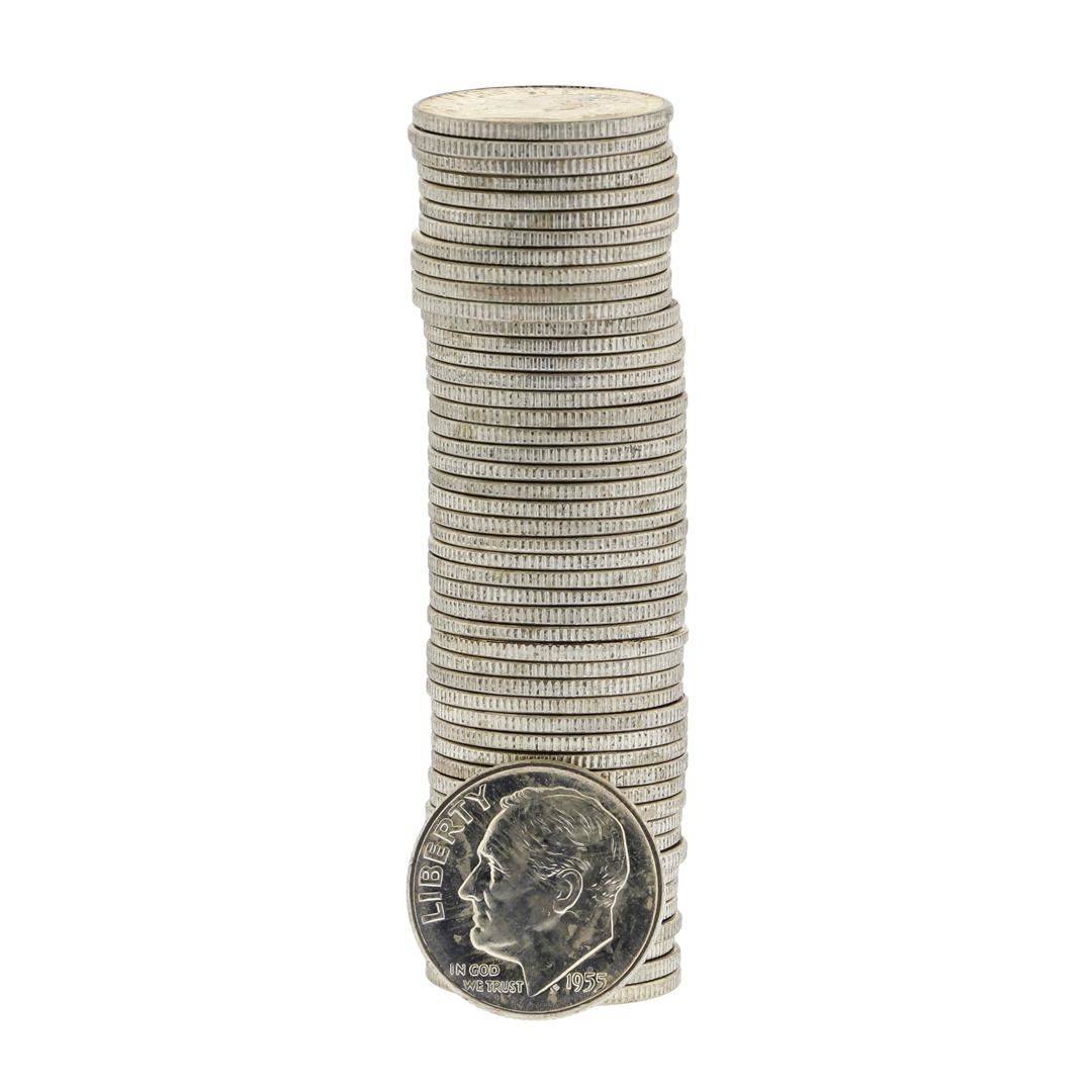 One Roll of (50) 1955-D Proof Roosevelt Dimes.