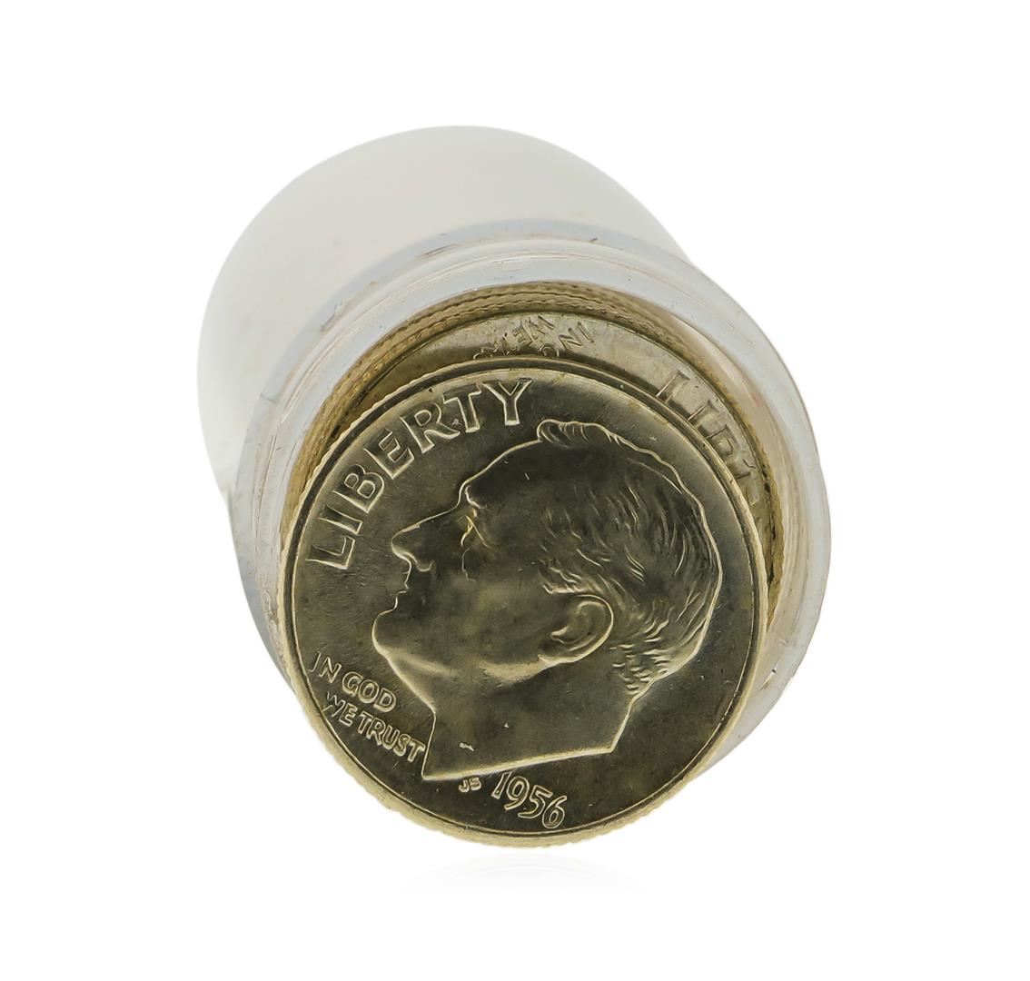 One Roll of (50) 1956-D Brilliant Uncirculated Roosevelt Dimes.