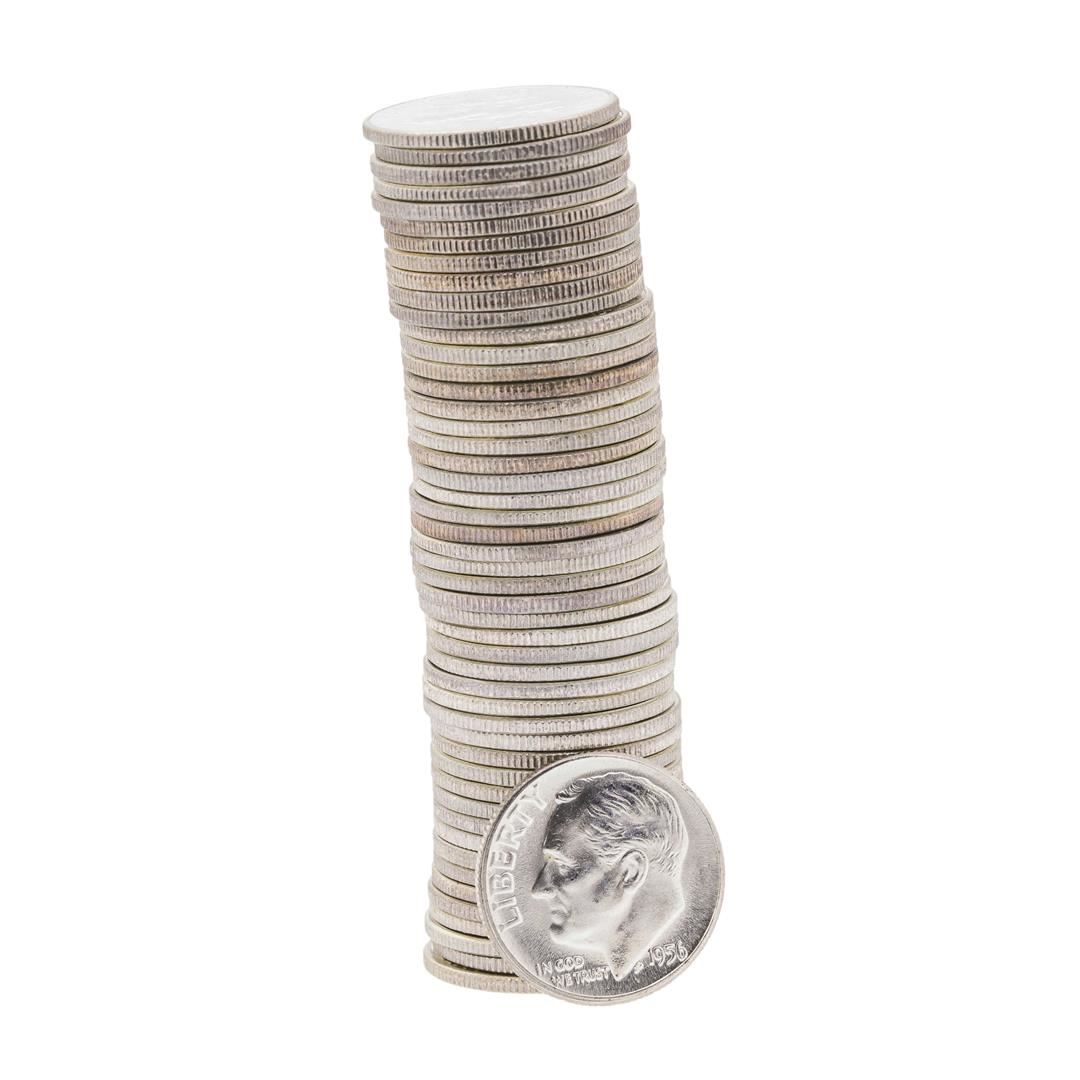 One Roll of (50) 1956-P Brilliant Uncirculated Roosevelt Dimes.
