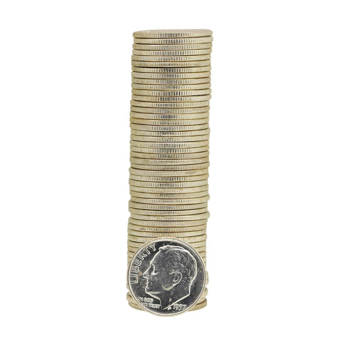 One Roll of (50) 1957-D Brilliant Uncirculated Roosevelt Dimes.