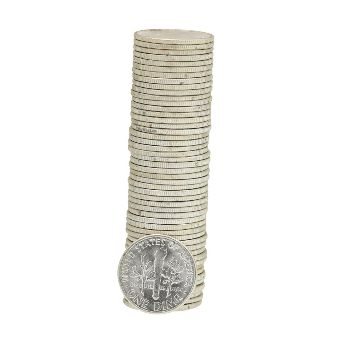 One Roll of (50) 1958 Brilliant Uncirculated Roosevelt Dimes.