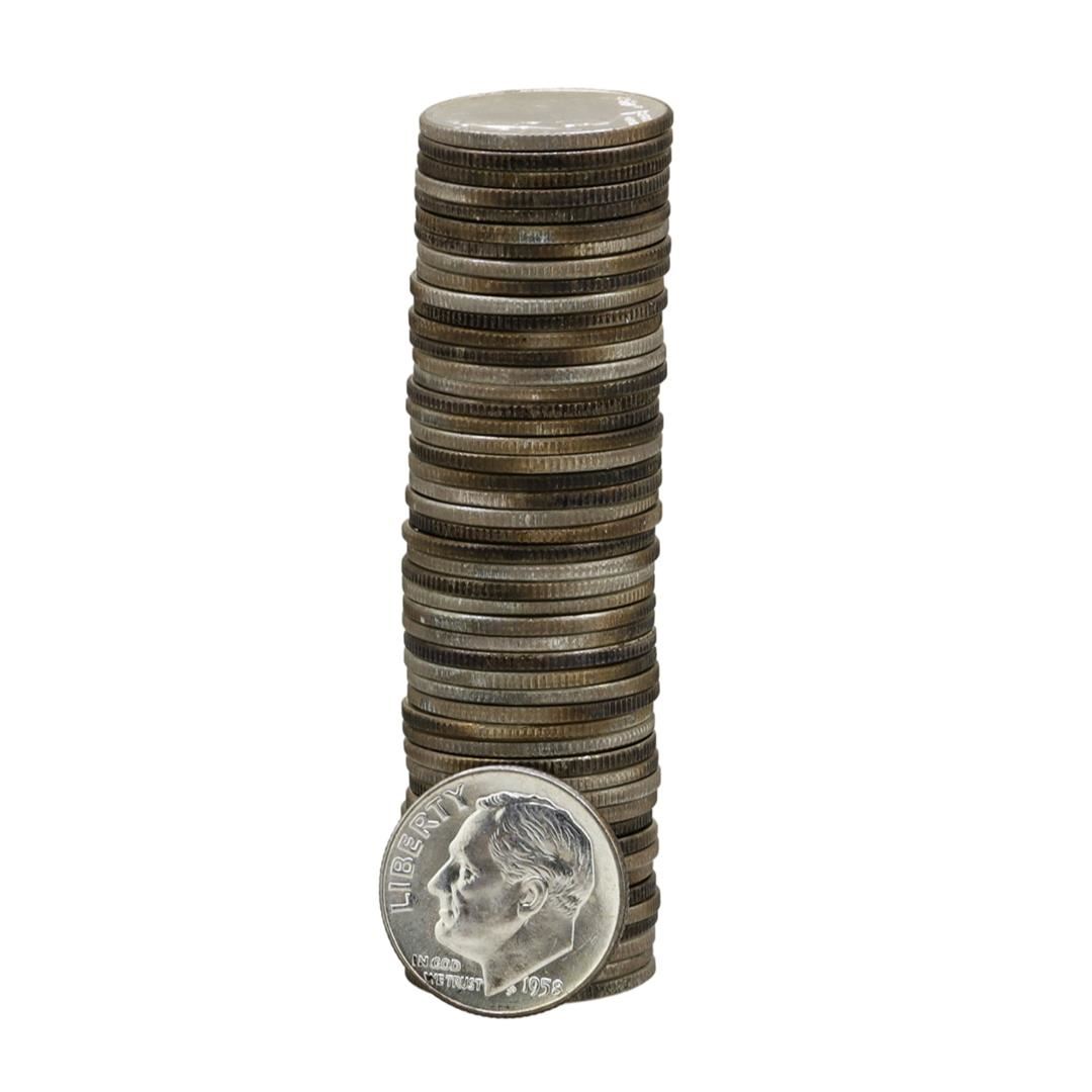 One Roll of (50) 1958-D Brilliant Uncirculated Roosevelt Dimes.