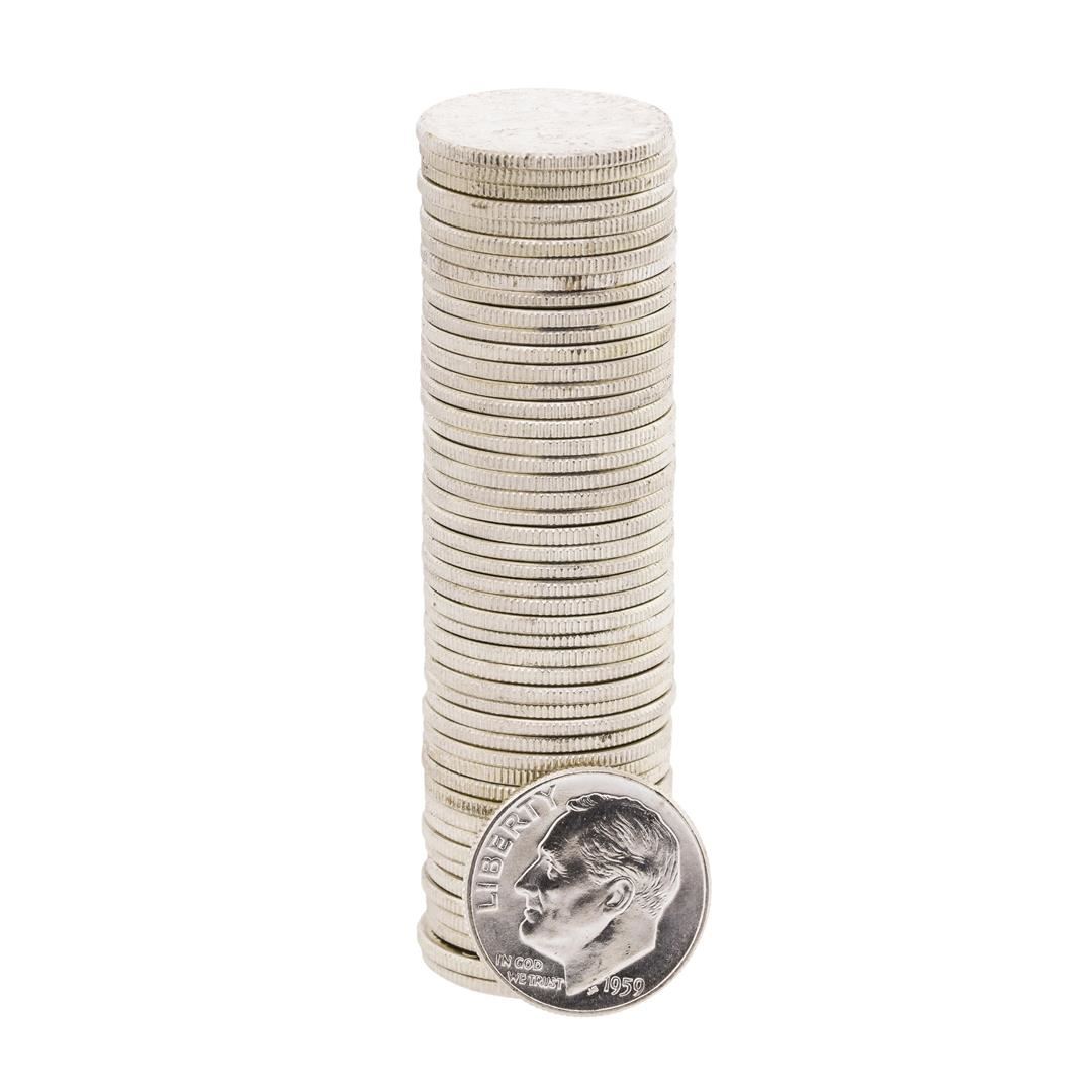 One Roll of (50) 1959 Brilliant Uncirculated Roosevelt Dimes.