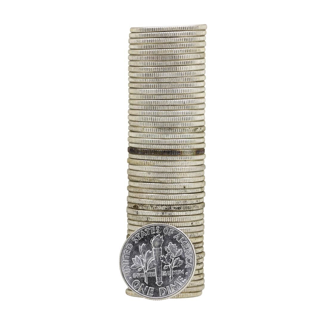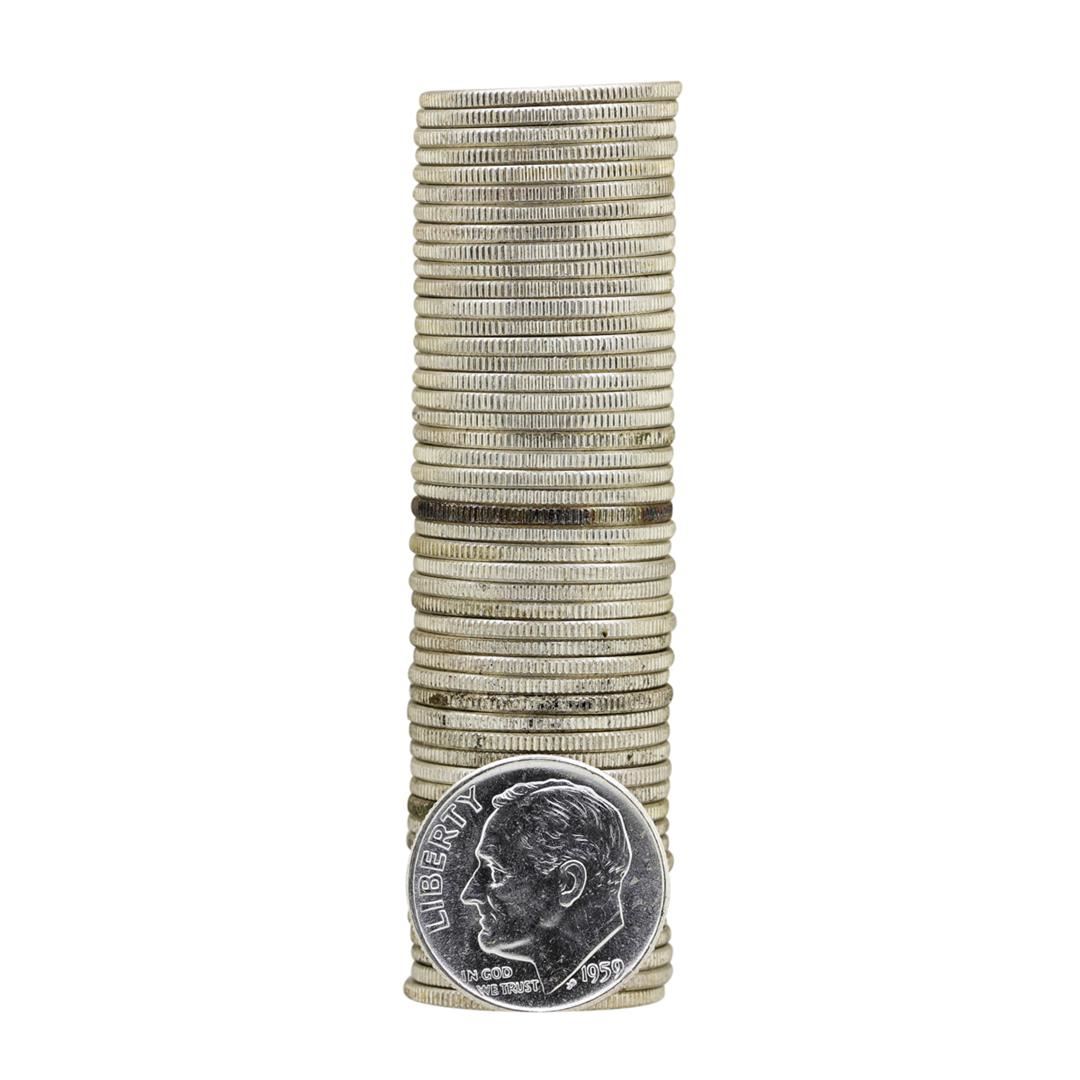 One Roll of (50) 1959 Brilliant Uncirculated Roosevelt Dimes.