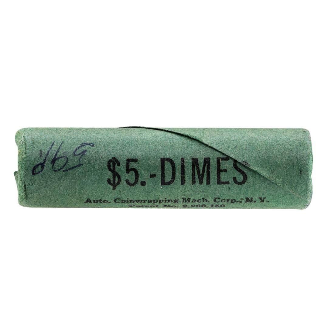 One Roll of (50) 1959 Brilliant Uncirculated Roosevelt Dimes.