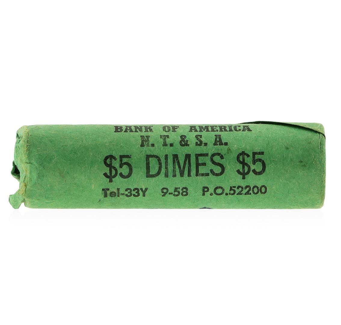 One Original Bank Roll of (50) 1959-D Brilliant Uncirculated Roosevelt Dimes.