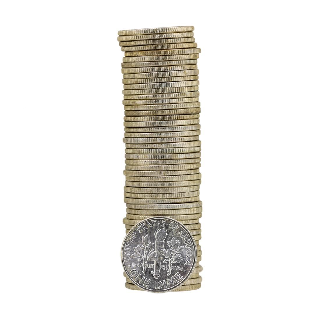 One Roll of (50) 1959-D Brilliant Uncirculated Roosevelt Dimes.