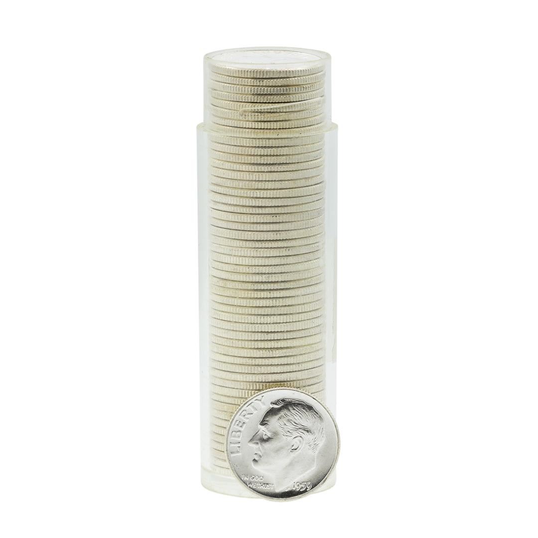 One Roll of (50) 1959-P Brilliant Uncirculated Roosevelt Dimes.