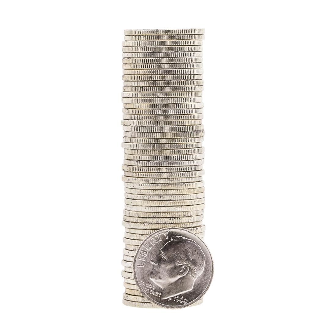 One Roll of (50) 1960 Brilliant Uncirculated Roosevelt Dimes.