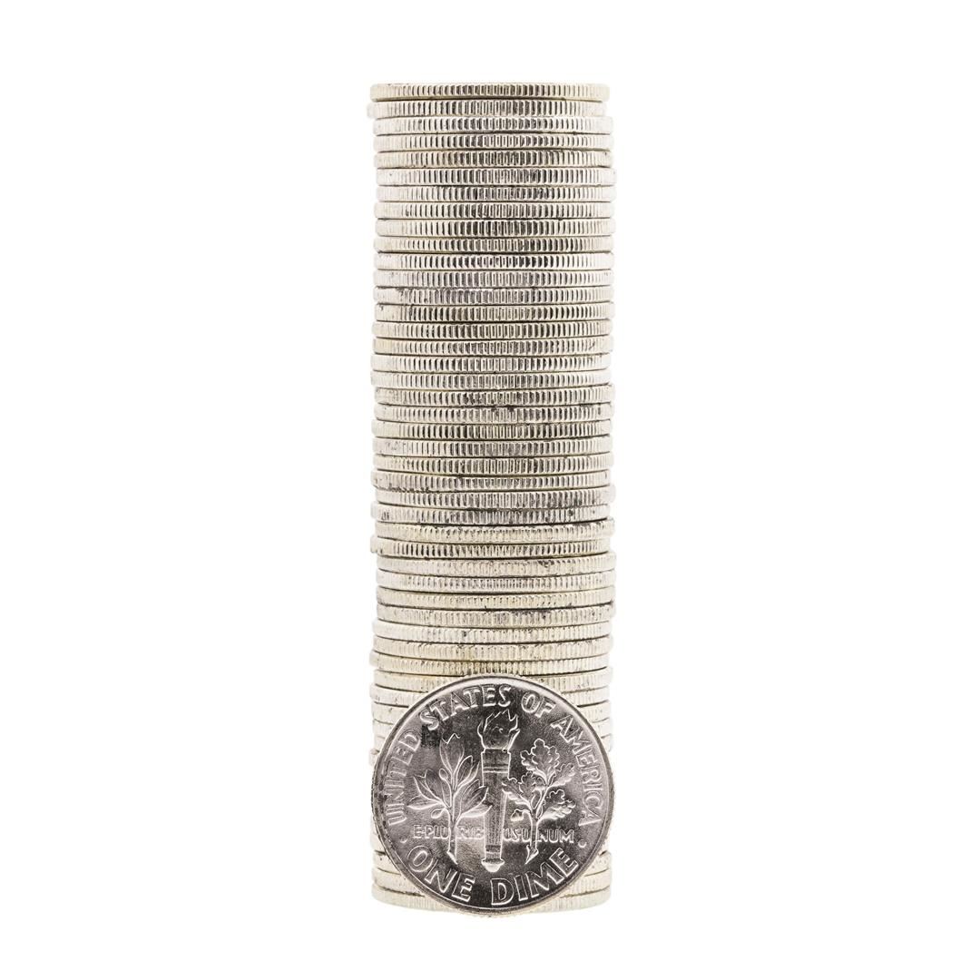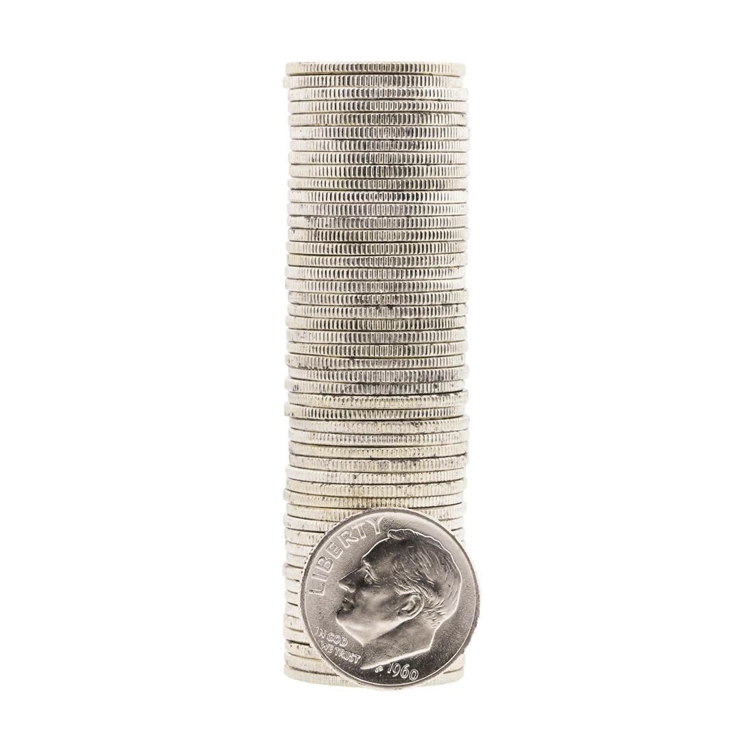 One Roll of (50) 1960 Brilliant Uncirculated Roosevelt Dimes.