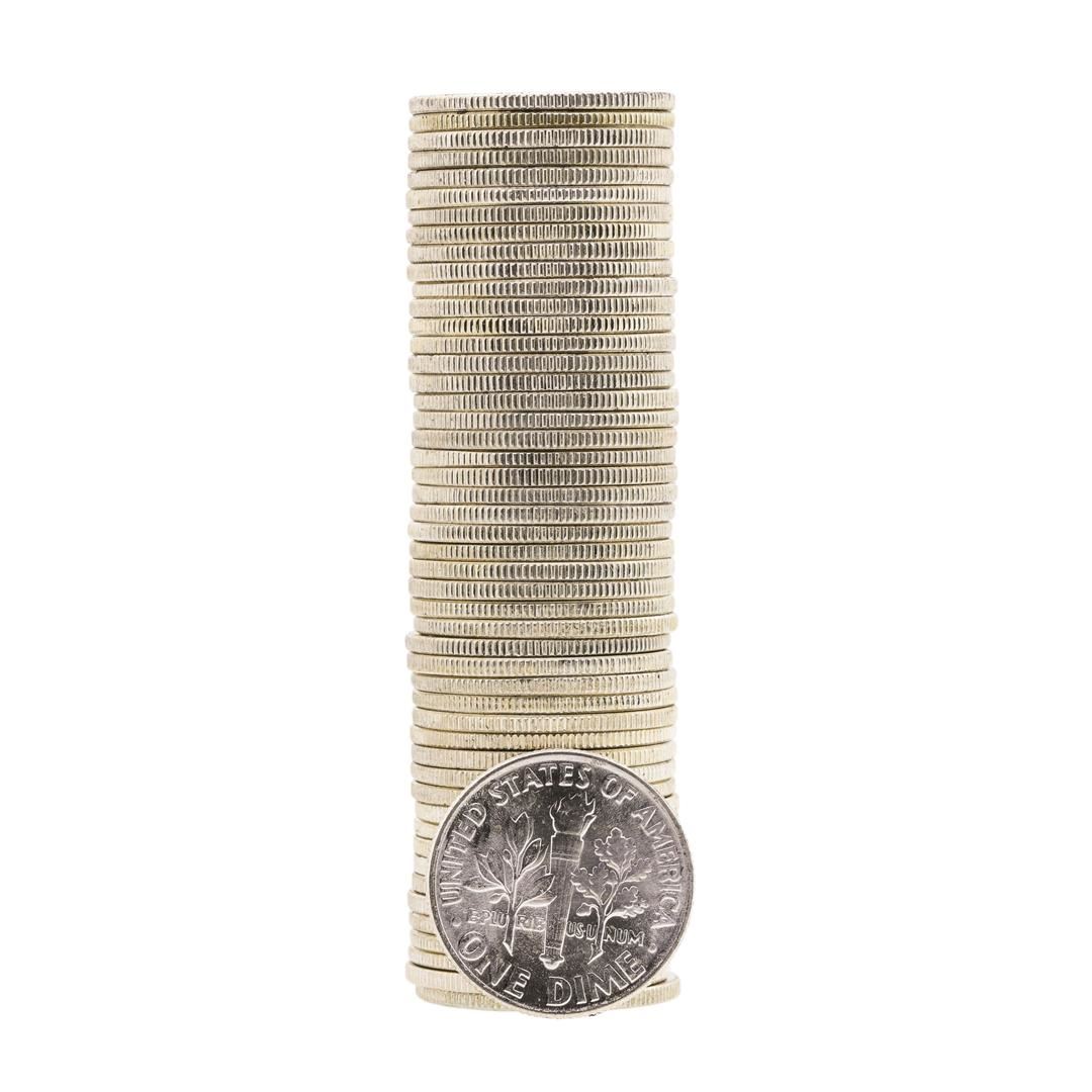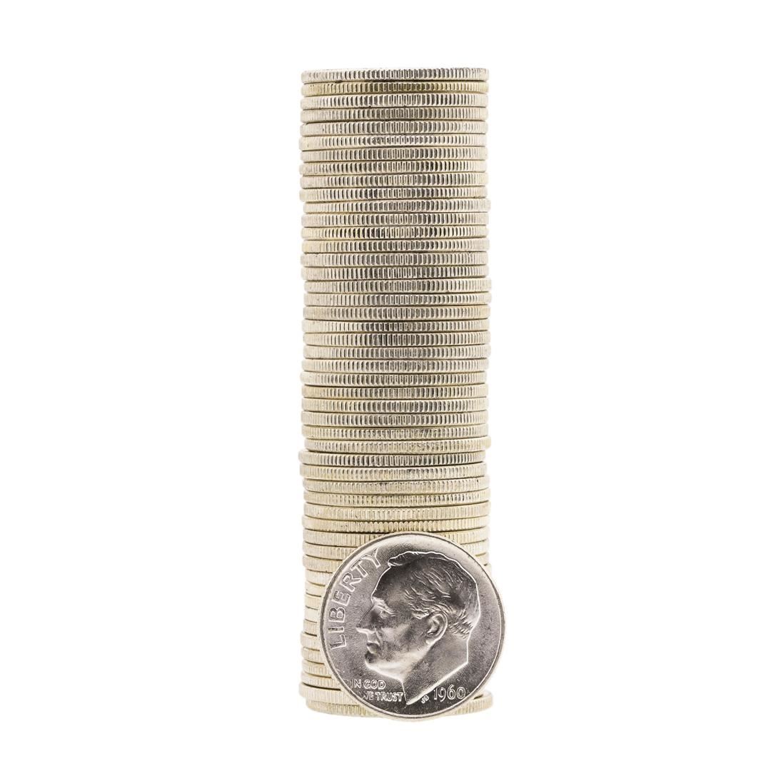 One Roll of (50) 1960 Brilliant Uncirculated Roosevelt Dimes.
