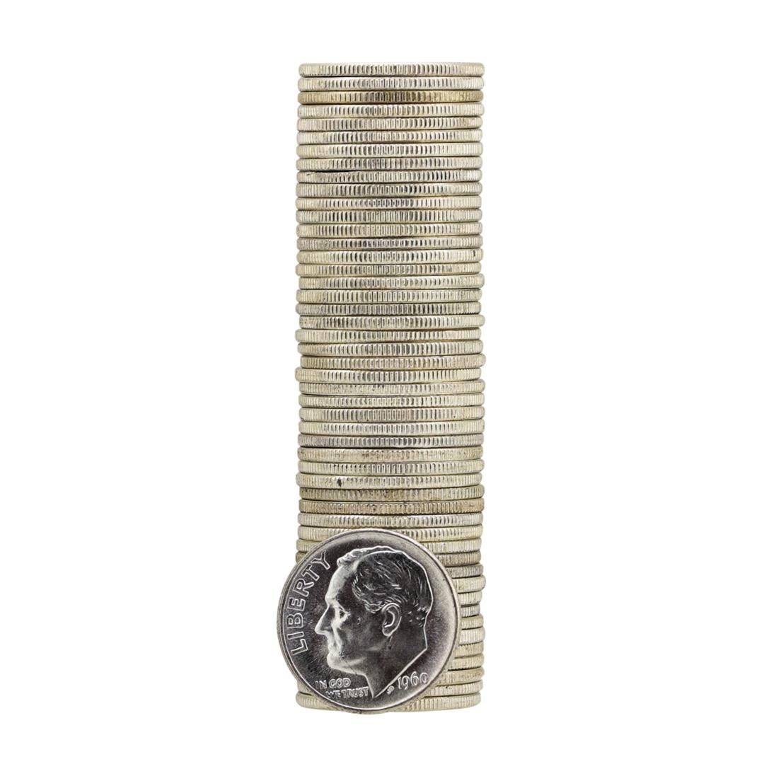 One Roll of (50) 1960 Brilliant Uncirculated Roosevelt Dimes.