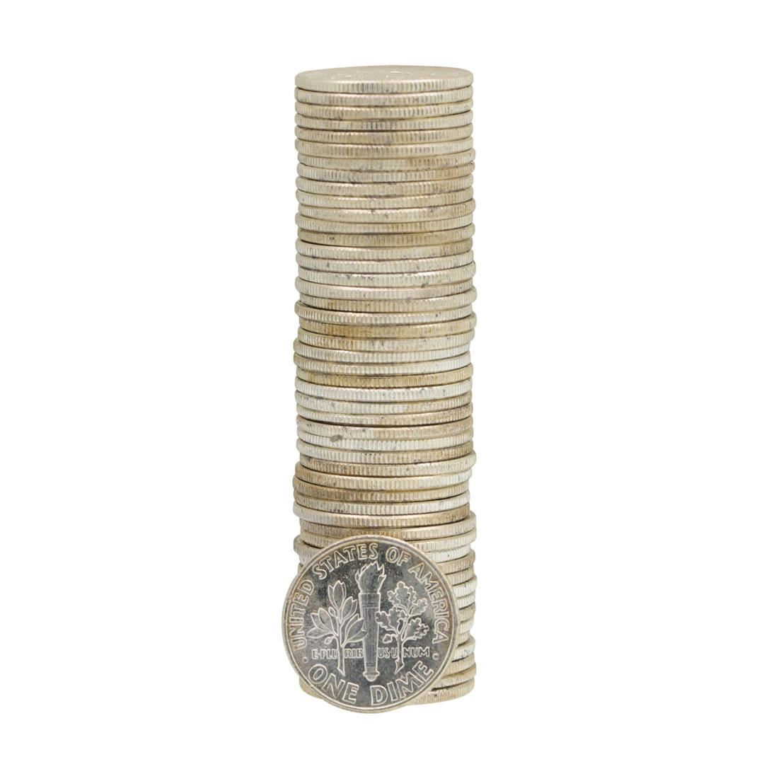 One Roll of (50) 1960 Brilliant Uncirculated Roosevelt Dimes.