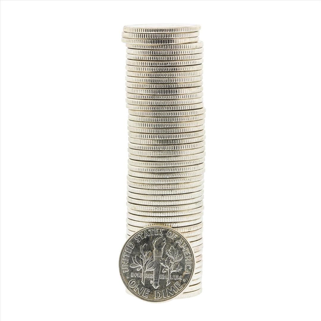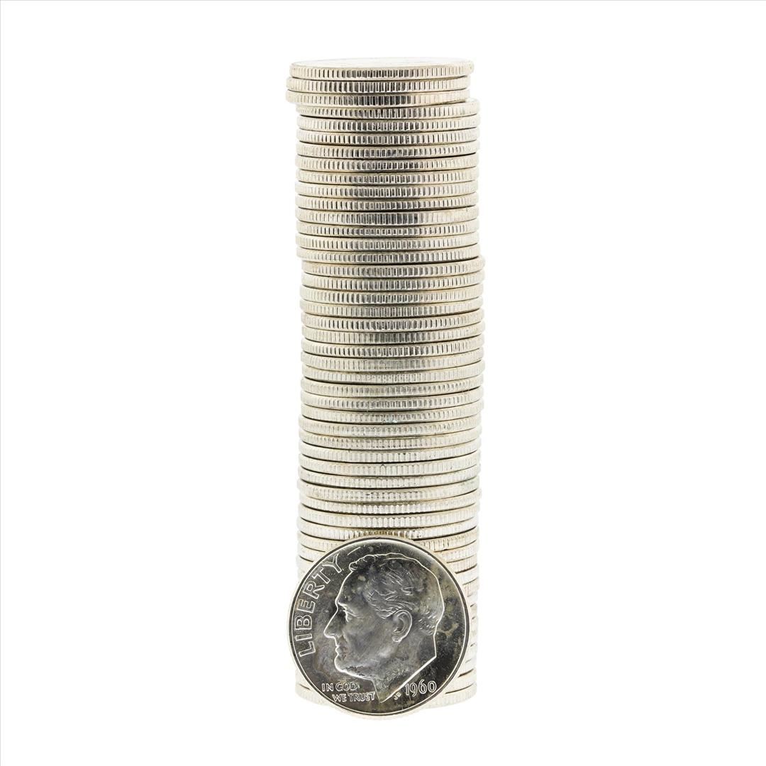 One Roll of (50) 1960-D Brilliant Uncirculated Roosevelt Dimes.