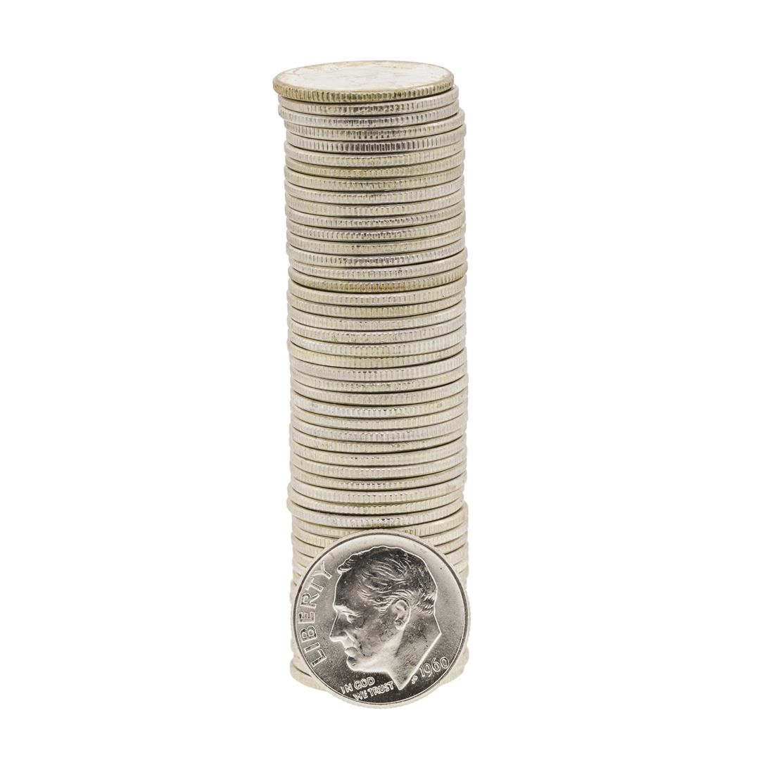 One Roll of (50) 1960-D Brilliant Uncirculated Roosevelt Dimes.